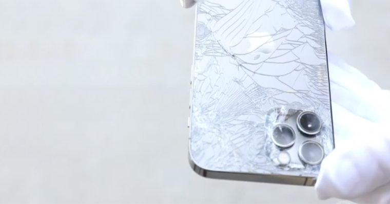 iPhone 12 Pro po pádu na záda telefonu; Zdroj: YouTube