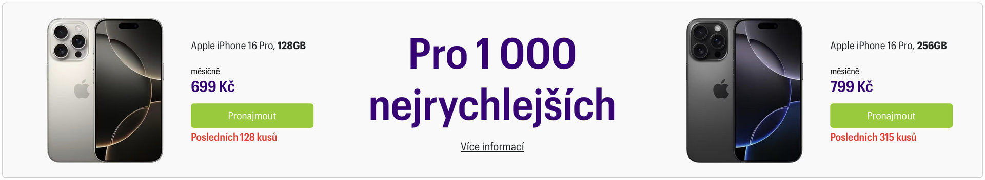 Speciálních zaváděcí cena ale v současné chvíli platí už jen pro přibližně 500 zákazníků (z původních tisíc), přičemž akční kusy oblíbenějšího iPhone 16 Pro, 128GB budou vyprodané doslova do několika dní.