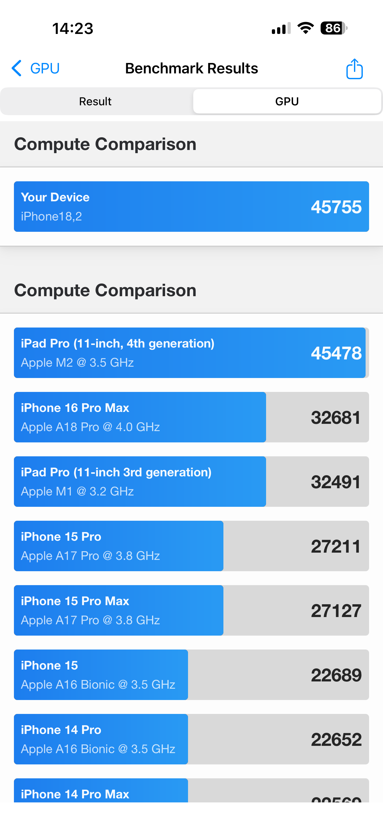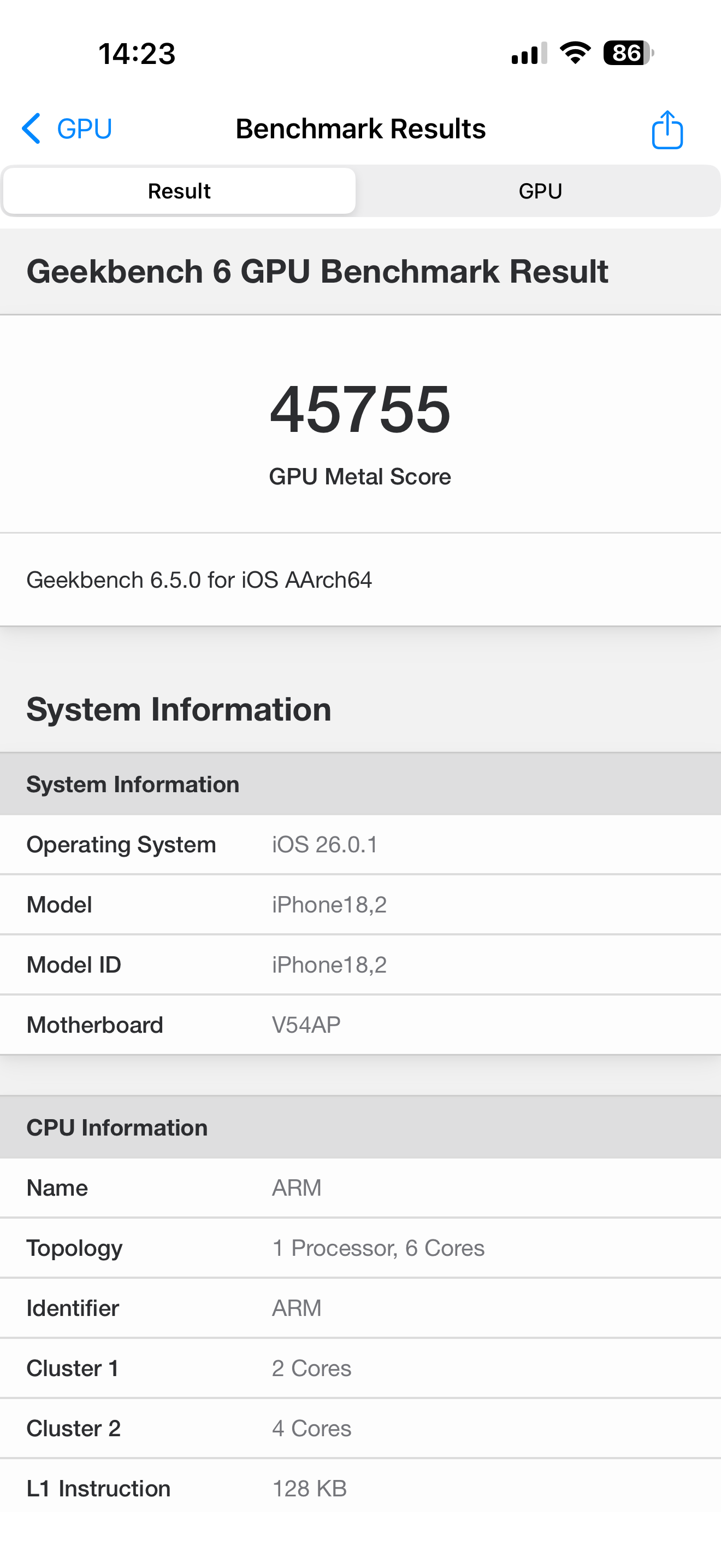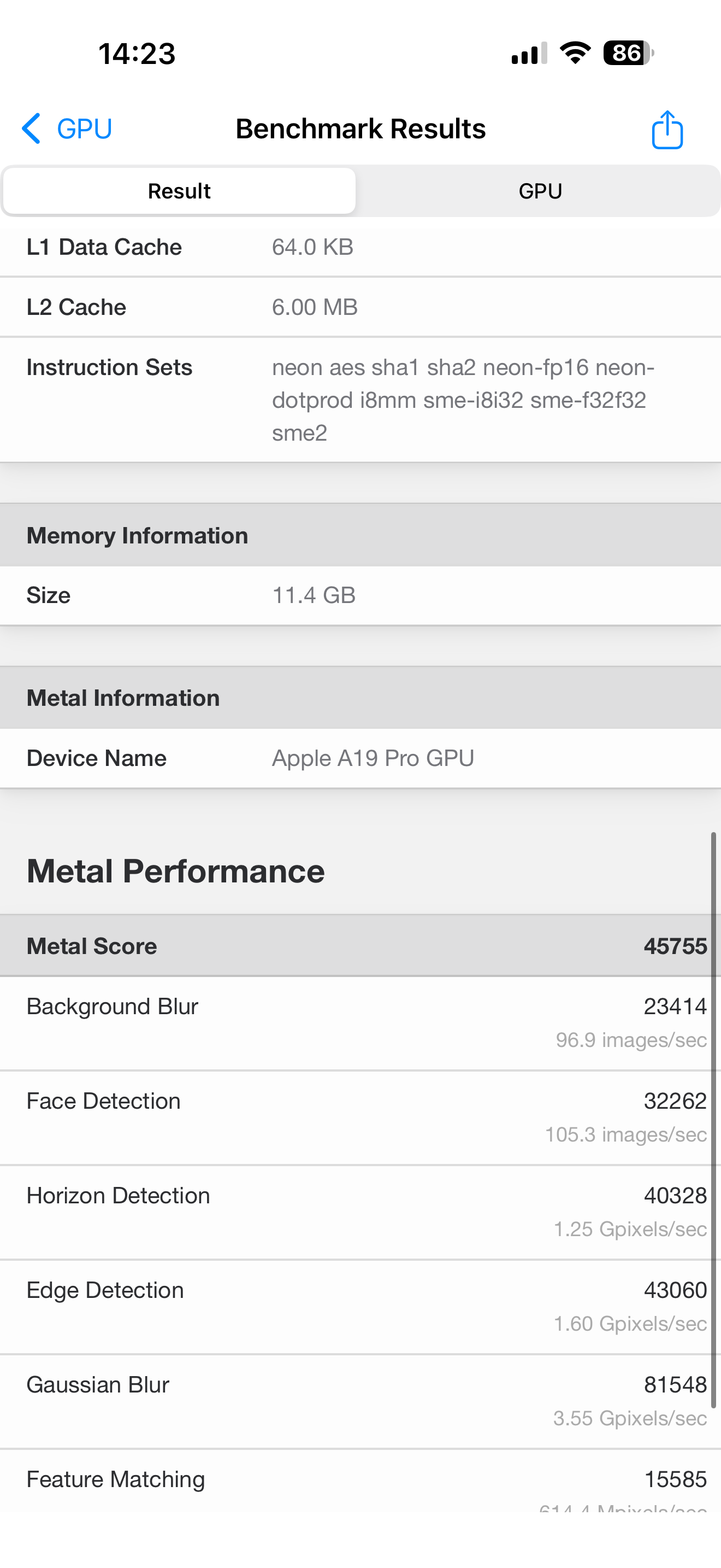 Stejně jako od každého nového Pro Max modelu iPhonu se i tady očekával vrchol v možném mobilním výkonu, o který se tentokrát stará čip A19 Pro. Je vyroben 3nm technologií a jeho takt dosahuje až 4,26 GHz. A vyniká trvalým výkonem. Vděčí za to právě hliníkové unibody konstrukci ale i zcela nové evaporační komoře. V ní deionizovaná voda odvádí teplo od čipu a umožňuje mu stabilně udržovat ještě vyšší výkon. Samozřejmě že pocítíte, že telefon hřeje, ale nepálí, jako dříve. Hřeje navíc rovnoměrně, ne jen v jednom místě, kde je čip. Po stránce výkonu tu není co řešit, je to nejvýkonnější iPhone s tím nejpokročilejším čipem. Zvládne všechno, co si pro něho připravíte, a to nejen letos nebo příští rok, ale i za několik let.