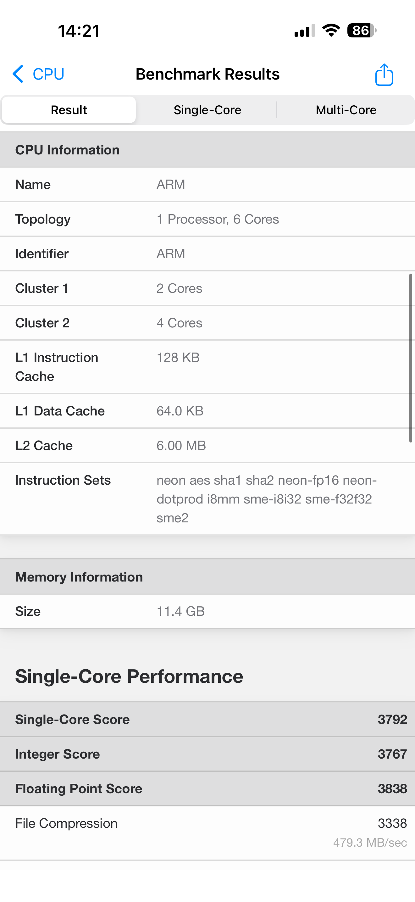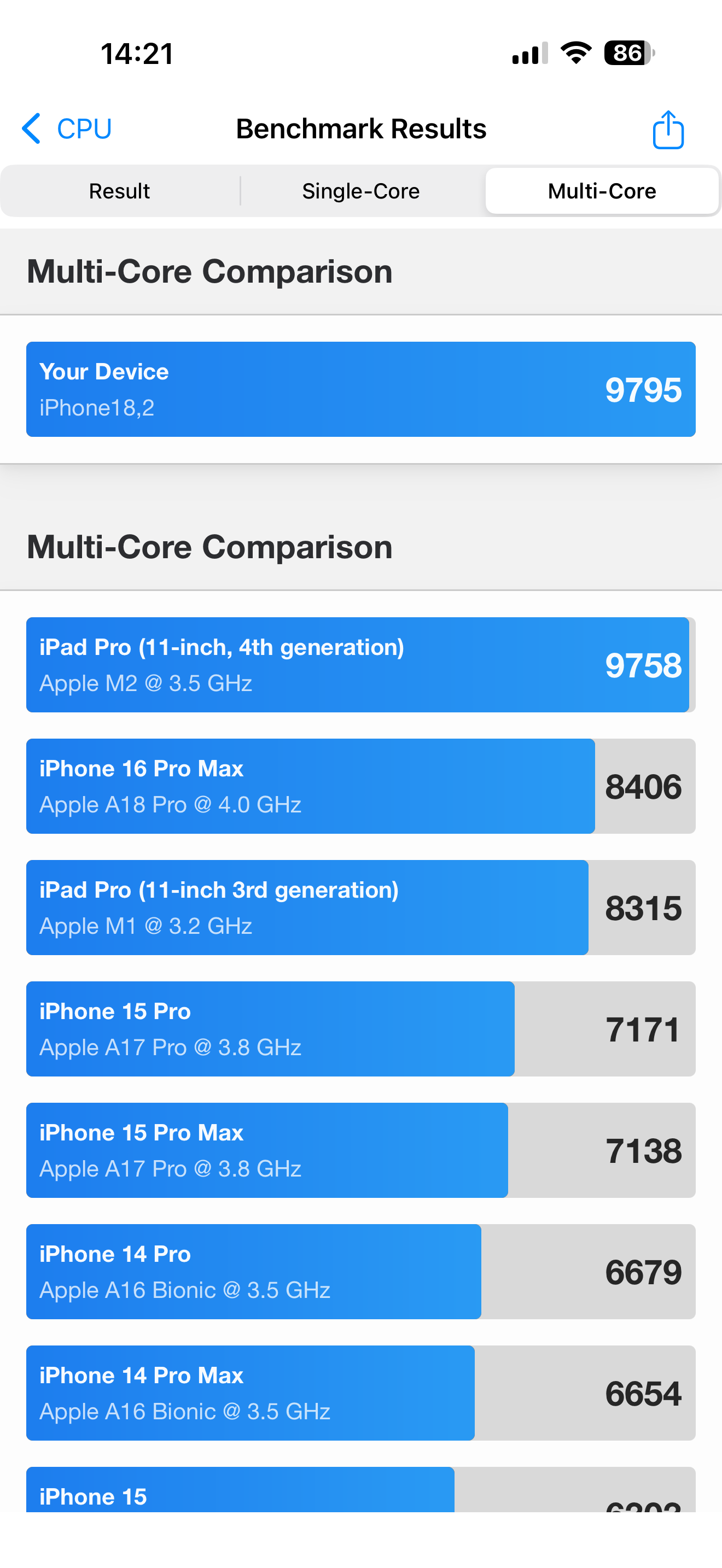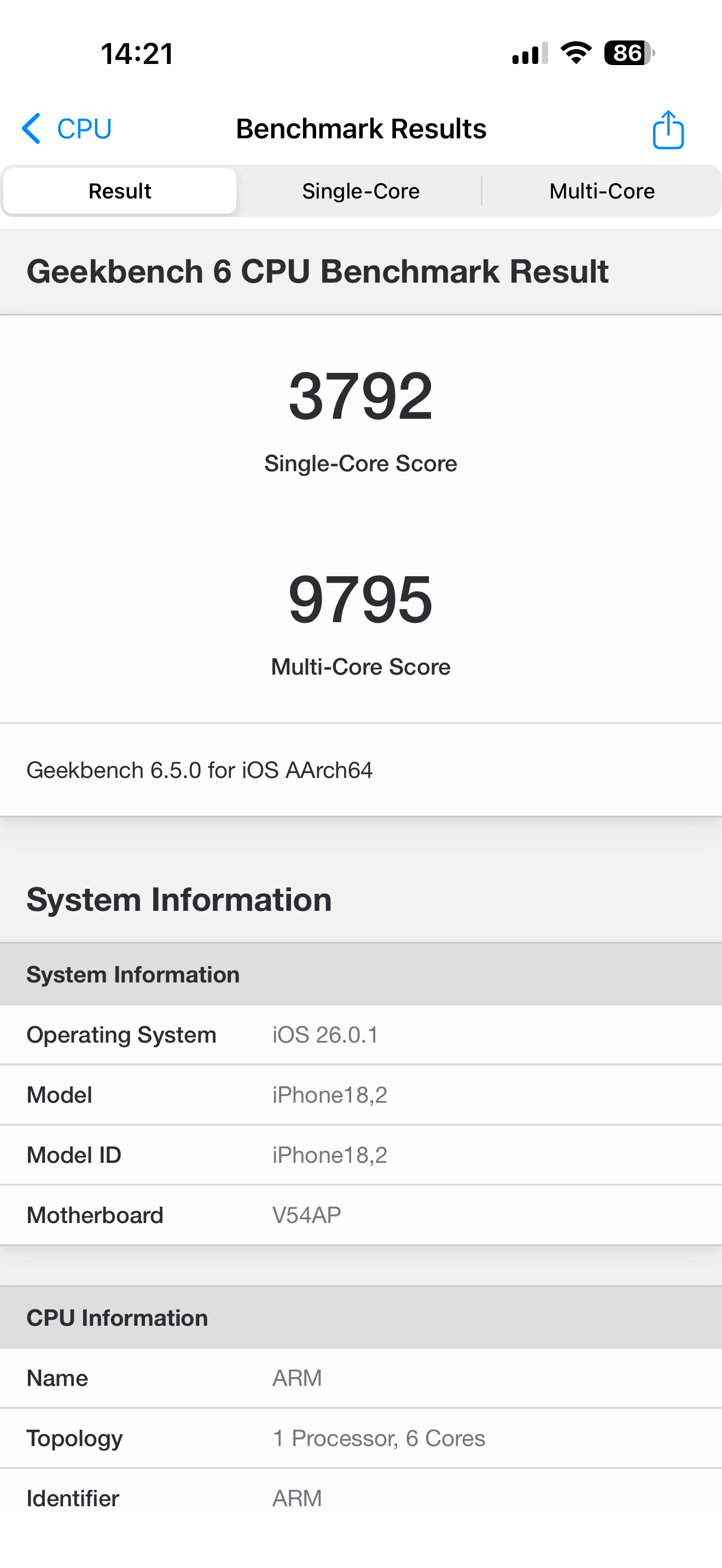 Mezi další pozitiva patří 12 GB paměti LPDDR5X RAM, i když to Apple veřejně neuvádí. Je tak docela vtipné, že můj telefon, tedy iPhone 17 Pro Max, má teď více RAM jak můj M2 MacBook Air. A pak je tu ještě čip N1, který kombinuje Wi-Fi 7, Bluetooth 6 a Thread. Modem je ale pořád ten od Qualcommu.