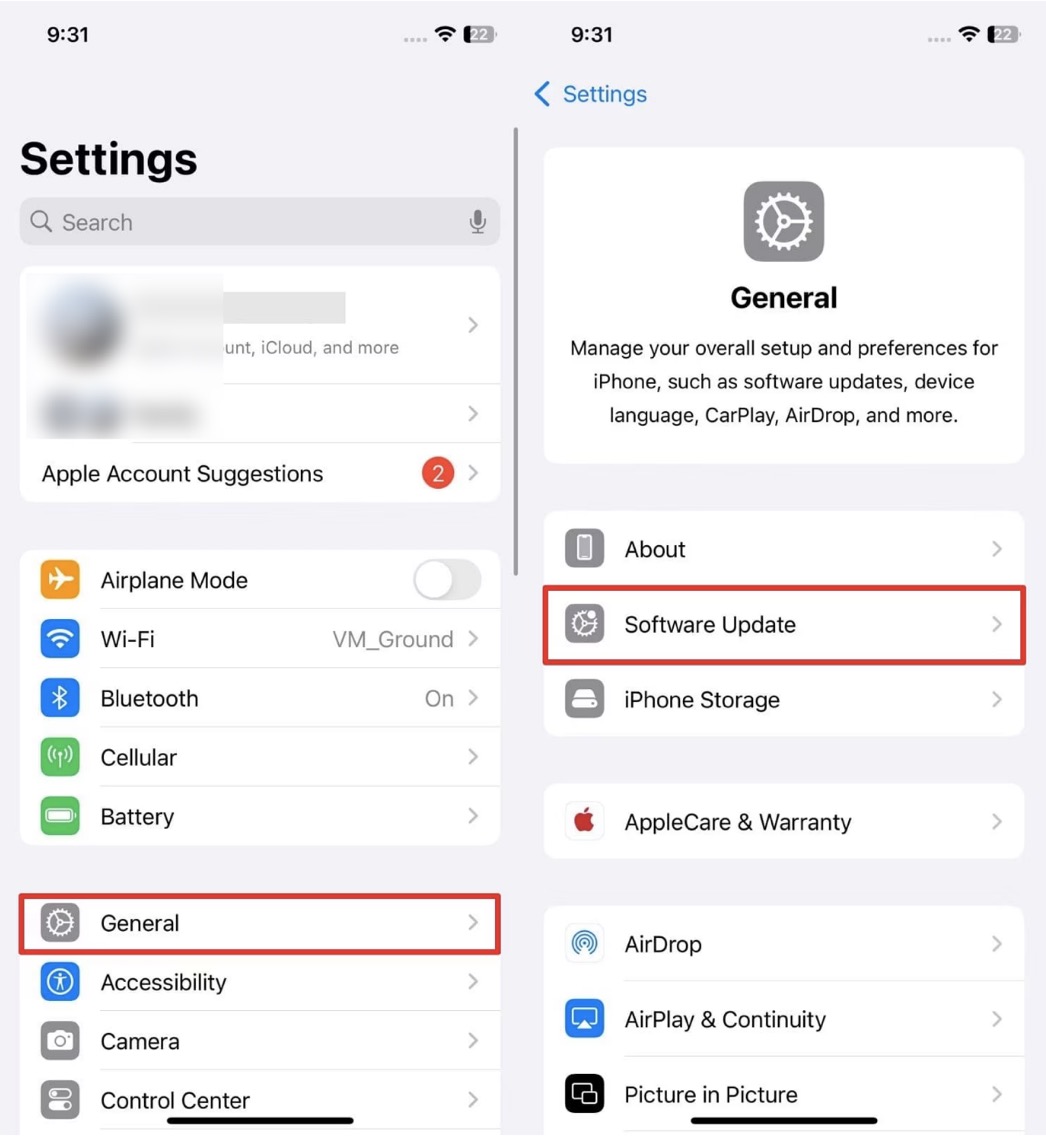 2. Přejděte do Nastavení > Obecné > Aktualizace softwaru.