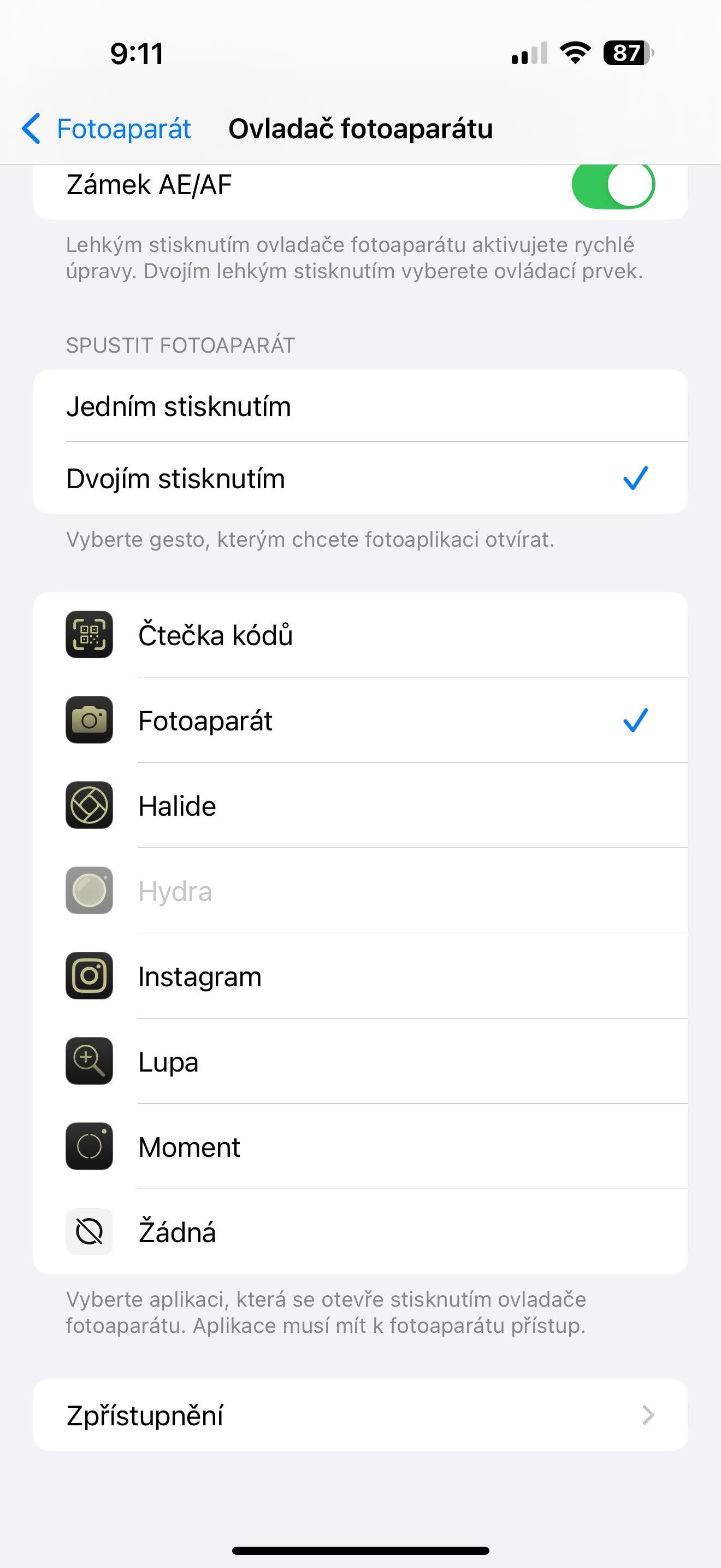 Pokud pak ale daný vývojář odladí ovladači svou aplikaci, můžete si zde zvolit i jakoukoli jinou, kterou máte v iPhonu nainstalovanou. Nyní třeba už Halide, Instagram, Moment, Hydra atd.