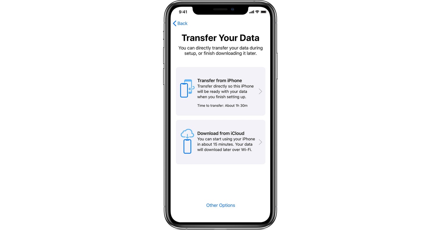 Možnost snadného přenosu dat ze starého iPhonu do nového implementoval Apple už do iOS 11 a uživatel ji může využít prakticky hned na začátku procesu nastavování nového/přeinstalovaného iPhonu. Doposud se data z jednoho zařízení do druhého kopírovala prostřednictvím bezdrátové sítě. Od iOS 12.4 je ale nově možné iPhony mezi sebou fyzicky propojit a data přenést prostřednictvím kabelu.