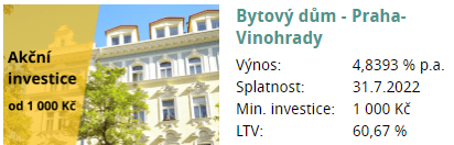 Můžete zde investovat menší částky a svůj kapitál tak bezpečněji rozložit mezi více projektů.