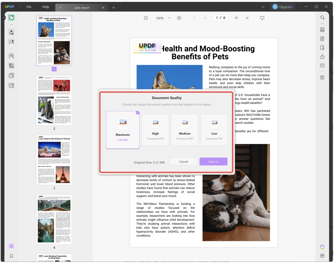Pokud hledáte nějaké cenově dostupné možnosti pro zmenšení PDF, UPDF může být vaším ideálním partnerem pro úpravu PDF díky řadě nástrojů za nižší ceny. Tento nástroj s umělou inteligencí umožňuje komprimovat soubory PDF do různých kvalit, včetně maximální, vysoké, střední nebo nízké, pro optimalizaci velikosti souboru podle vašich požadavků.