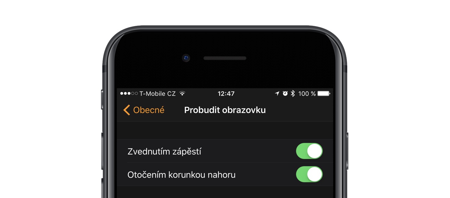 Apple však zároveň ve watchOS umožňuje ještě jednu variantu pro probuzení Watch a rozsvícení displeje – přes otáčení digitální korunky. To lze navíc využít i bez zapnutého režimu kina. V aplikaci Watch na iPhonu v sekci Obecné > Probudit obrazovku zapnete funkci Otočením korunkou nahoru, a pak kdykoliv máte zhasnutý displej, stačí korunkou pootočit a displej se začne pomalu rozsvěcet.