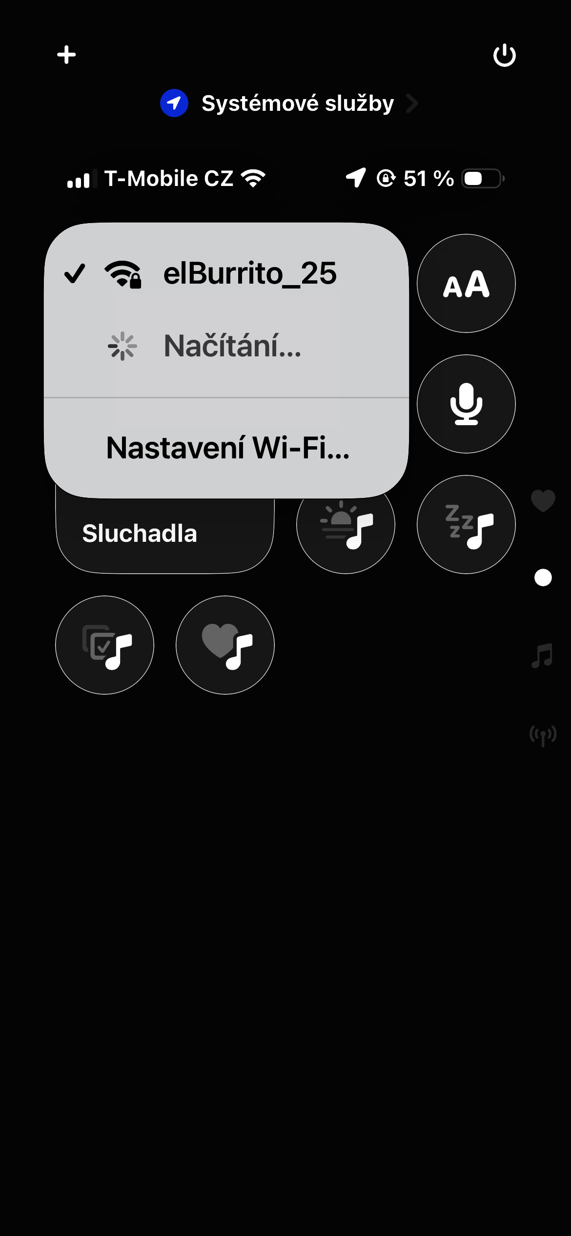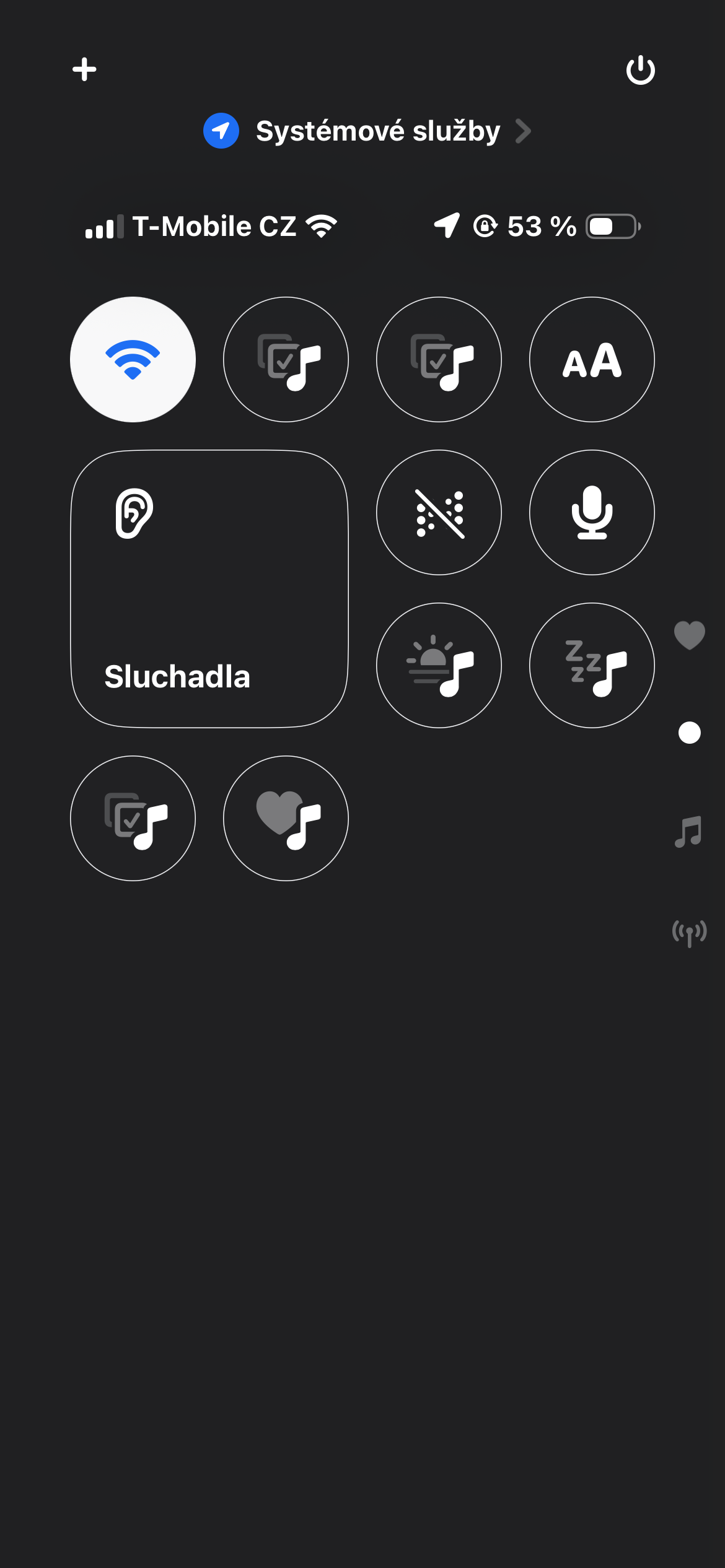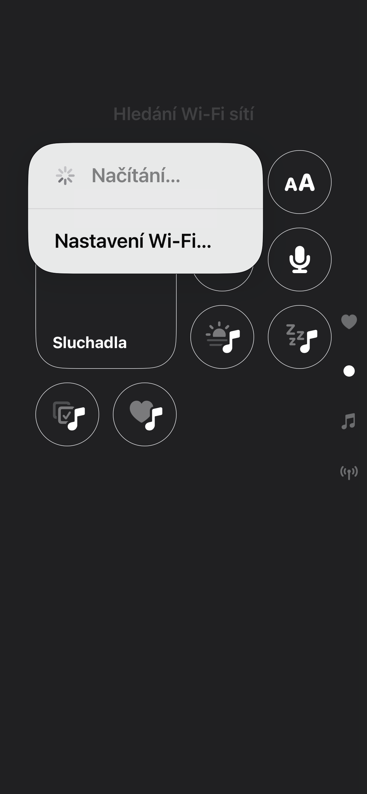 - Najděte samostatné tlačítko Wi-Fi. Pokud ho v Ovládacím centru ještě nemáte, můžete jej přidat v nastavení přizpůsobení ovládacích prvků.