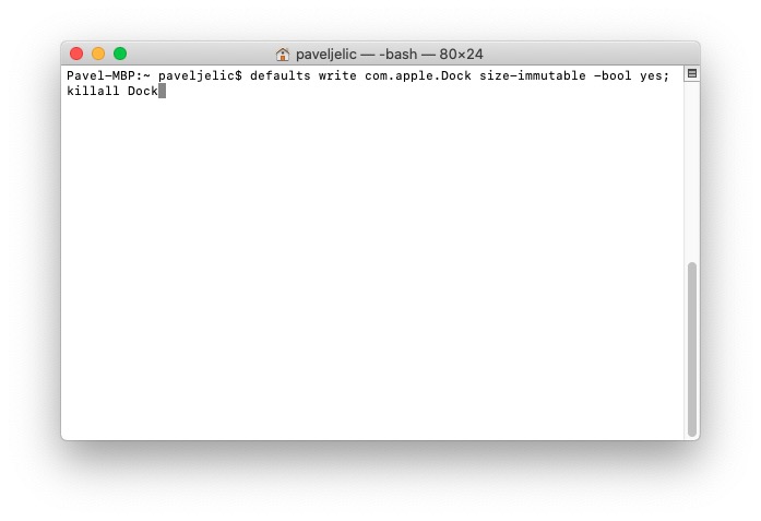 A poté jej vložte do okna aplikace Terminál. Nyní stačí stisknout tlačítko Enter, čímž se příkaz vykoná. Nezapomeňte si před potvrzením příkazu velikost Docku nastavit podle svých představ.