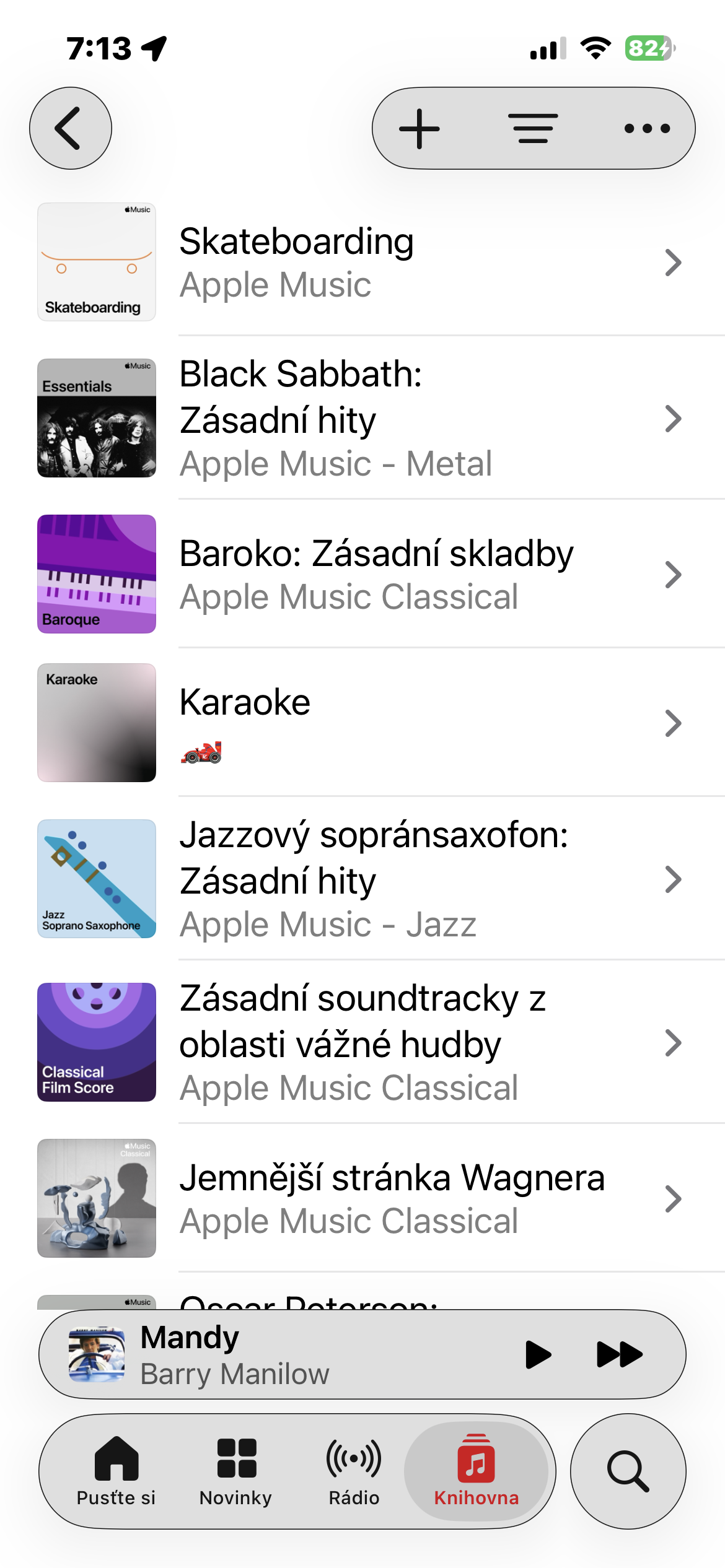 - V sekci Playlisty klepněte na ikonu + v horní části obrazovky.