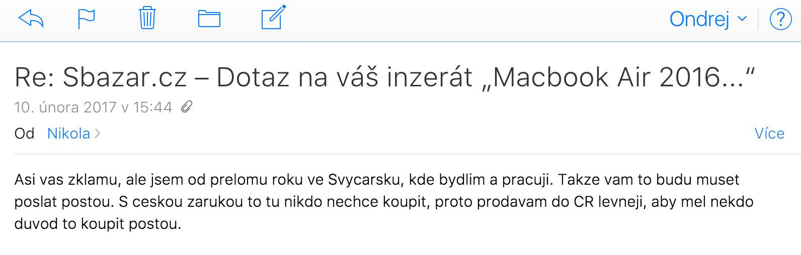 Pro náš bazar na Jablíčkáři i jakýkoliv jiný na českém internetu platí, že se bohužel nedokážeme vždy zbavit úplně všech podvodníků. Jednak se vynořují neustále noví šejdíři a jednak je často při pouhém pohledu na inzerát nelze identifikovat. Obvykle na to, že se jedná o něco nekalého, kápnete nejdříve až při prvním kontaktu s inzerentem. Někdo ale bohužel ani tehdy ne.