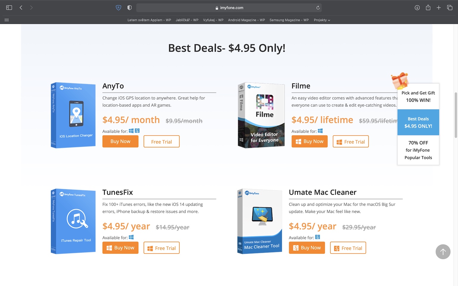 V rámci druhé akce od iMyFone získáte možnost pro zakoupení čtyř programů za pouhých 4.95 dolarů za jeden. Tuto akci můžete využít především tehdy, pokud se na vás v první akci neusmálo štěstí a nepodařilo se vám získat takový program, který jste chtěli. Za 4.95 dolarů si můžete v rámci druhé akce pořídit programy AnyTo, Filme, TunesFix a Umate Mac Cleaner. Tyto programy jsou doopravdy skvělé a za cenu 4.95 dolarů rozhodně neváhejte – mohu potvrdit z vlastní zkušenosti.