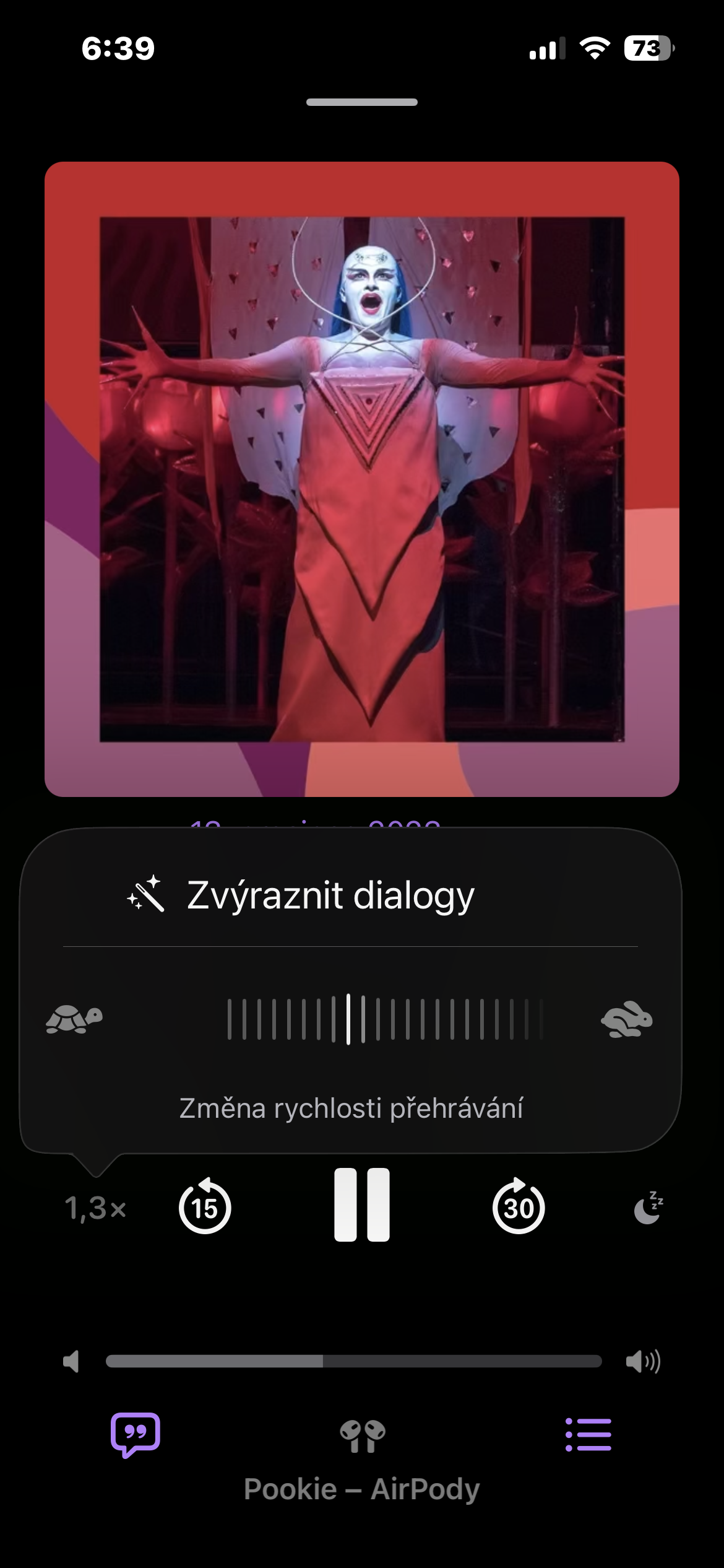 Nově je možné nastavit rychlost v rozmezí od 0,5× do 3× a to s přesností na desetiny. Díky tomu si přehrávání snadno přizpůsobíte tak, aby vám dokonale vyhovovalo – ať už potřebujete mluvené slovo zpomalit, nebo naopak zrychlit.