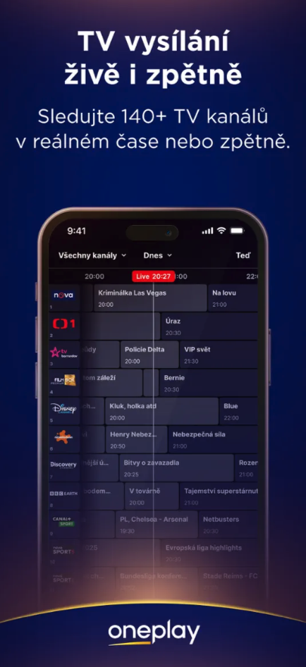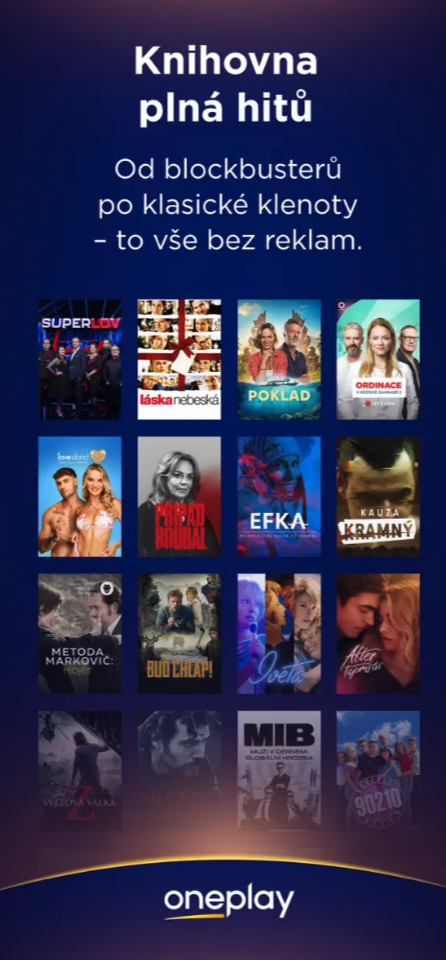 OnePlay je nová streamovací a televizní služba, která vznikla spojením platforem Voyo a O2 TV a přináší ucelený zážitek ze sledování toho nejlepšího obsahu v češtině. Na jednom místě nabízí tisíce hodin filmů, seriálů, sportovních přenosů, exkluzivních předpremiér i originální tvorby OnePlay, takže si na své přijdou fanoušci domácí produkce i zahraničních titulů. Samozřejmostí je možnost sledovat živé vysílání, využívat zpětné přehrávání nebo si pořady nahrávat a pustit kdykoliv později. Díky aplikaci máte svou oblíbenou zábavu neustále po ruce – doma, na cestách i během svátečních dní, a to doslova na jedno klepnutí.