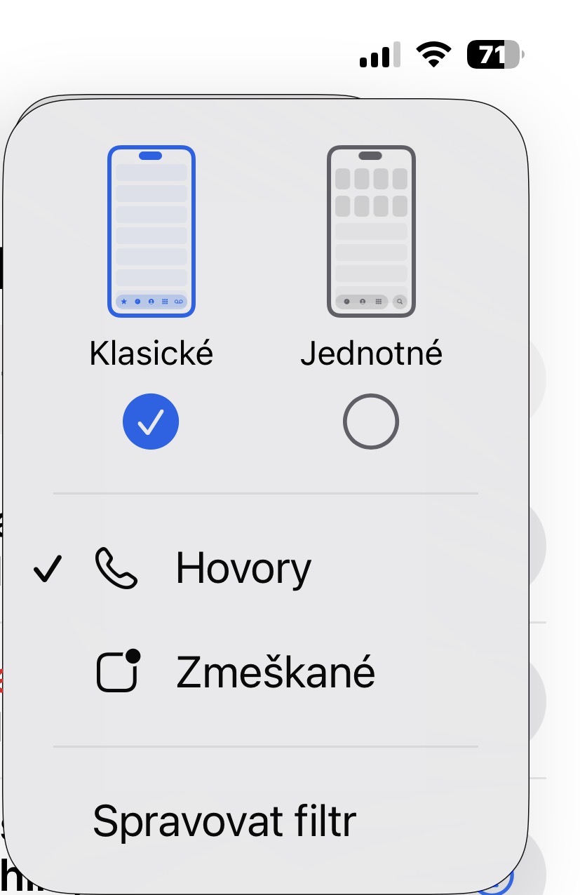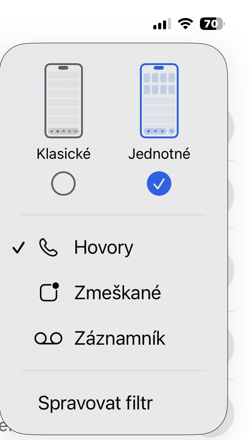 Pokud vám sjednocený vzhled nevyhovuje, můžete se snadno vrátit ke klasickému rozložení známému z iOS 18: