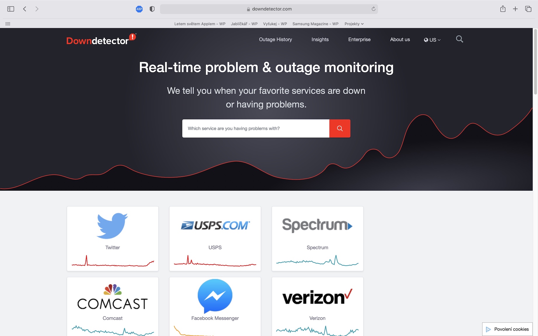 Webová stránka Downdetector slouží, jak už název napovídá, k detekci „spadnutých“ služeb. Princip této stránky je velmi jednoduchý a tvoří ji především samotní uživatelé, naprosto stejní jako jste vy. Tito uživatelé totiž mohou u jednotlivých služeb nahlásit, že s nimi zrovna mají problémy. Všichni tito uživatelé se postupně střádají, a pokud si v době nefunkčnosti službu na Downdetectoru otevřete, tak si můžete jejich počet zobrazit. Jednoduše tak zjistíte, zdali má problém více uživatelů po celém světě, anebo zdali je problém na vaší straně. Jestliže má problém vícero uživatelů, tak lze předpokládat, že má určitá služba výpadek. Po přesun na stránky Downdetectoru dole najdete služby, u kterých uživatelé v současné době zaznamenávají výpadek, nahoře pak můžete využít vyhledávání pro nalezení konkrétní služby a jejího stavu. Pod profilem každé služby si pak můžete zobrazit přesnější data, například živou mapu, anebo komentáře jednotlivých uživatelů.