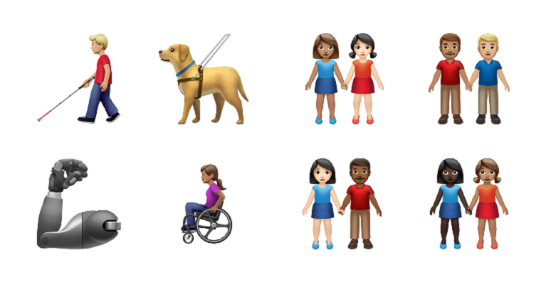 Dalším velkým balíkem nových emotikon je zobrazení hendikepovaných uživatelů. V nové sadě se tak objeví například slepecký pes, nevidomý se slepeckou holí, ucho se zobrazeným naslouchátkem, invalidní vozík či různé druhy protéz.