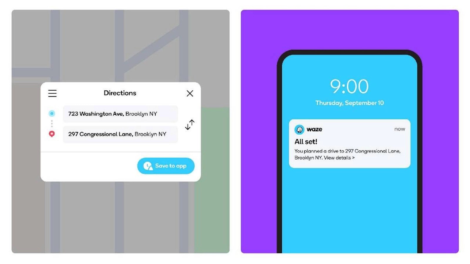 - Nakonec stačí na vašem zařízení otevřít Waze, kde už by měla být trasa připravená. V případě, že jste si při plánování nastavili čas příjezdu, tak vám Waze na mobilní zařízení našle notifikaci v dobu, kdy je třeba vyrazit. Waze samozřejmě počítá s uzavírkami, kolonami a dalšími podmínkami na cestách.