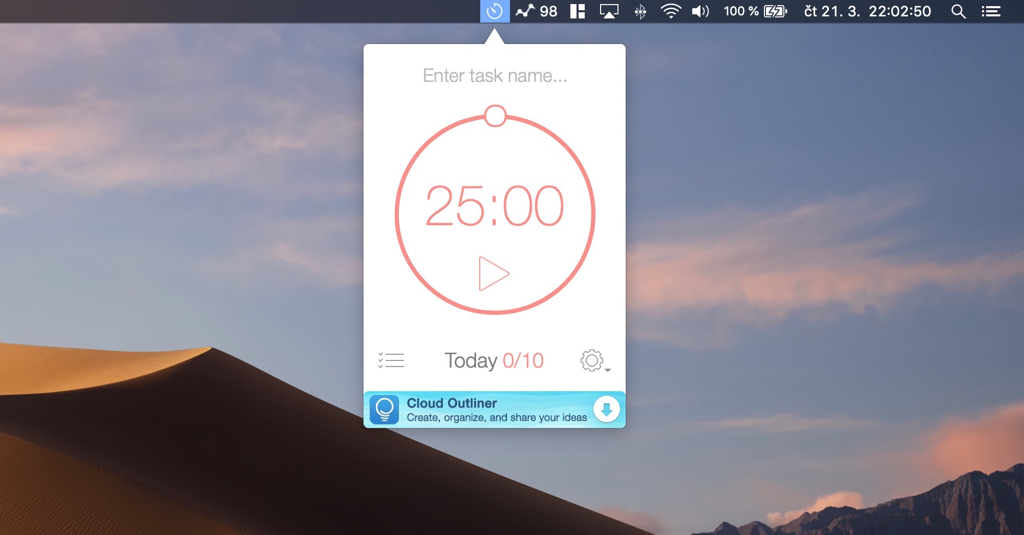 Každý den vám v této rubrice přineseme podrobnější pohled na vybranou aplikaci, která nás právě zaujala. Najdete zde aplikace pro produktivitu, kreativitu, utility, ale také třeba hry. Nebude se vždy nutně jednat o nejžhavější novinku, naším cílem je především vyzdvihnout aplikace, o nichž si myslíme, že stojí za pozornost. Dnes si představíme aplikaci Be Focused, která vám pomůže lépe se soustředit na úkoly.