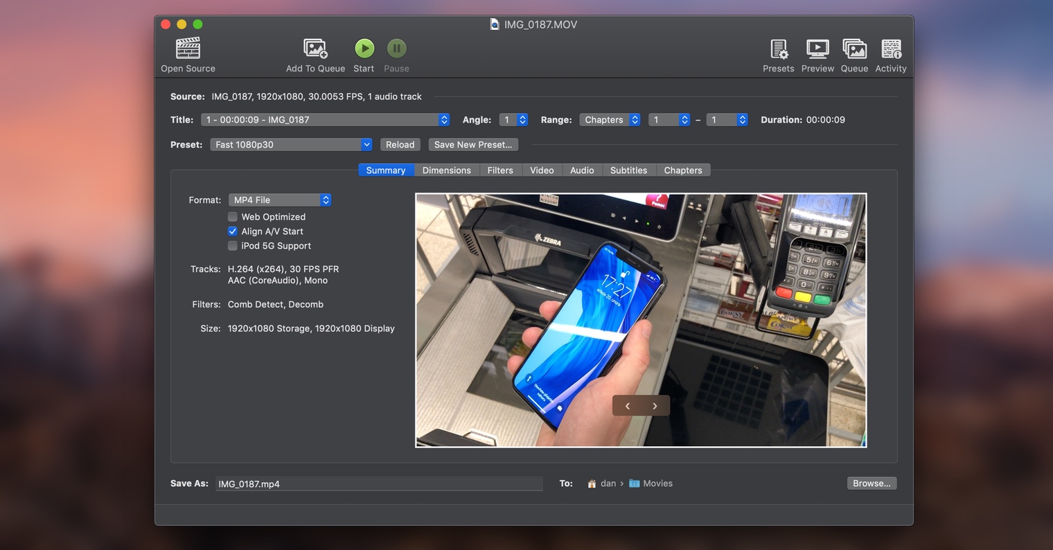 Možnosti převodu, které HandBrake nabízí, jsou opravdu široké. Umožňuje změnu velikosti obrazu či jeho ořez, přidání alternativní audio stopy, vlastních titulků, přidání efektů, změnu kodeků a mnoho dalšího. Užitečným bonusem je pak možnost dávkového převodu souborů s možností sledování průběhu konverze. V předvolbách si pak můžete detailně nastavit výchozí způsob, jakým bude HandBrake na vašem Macu pracovat.