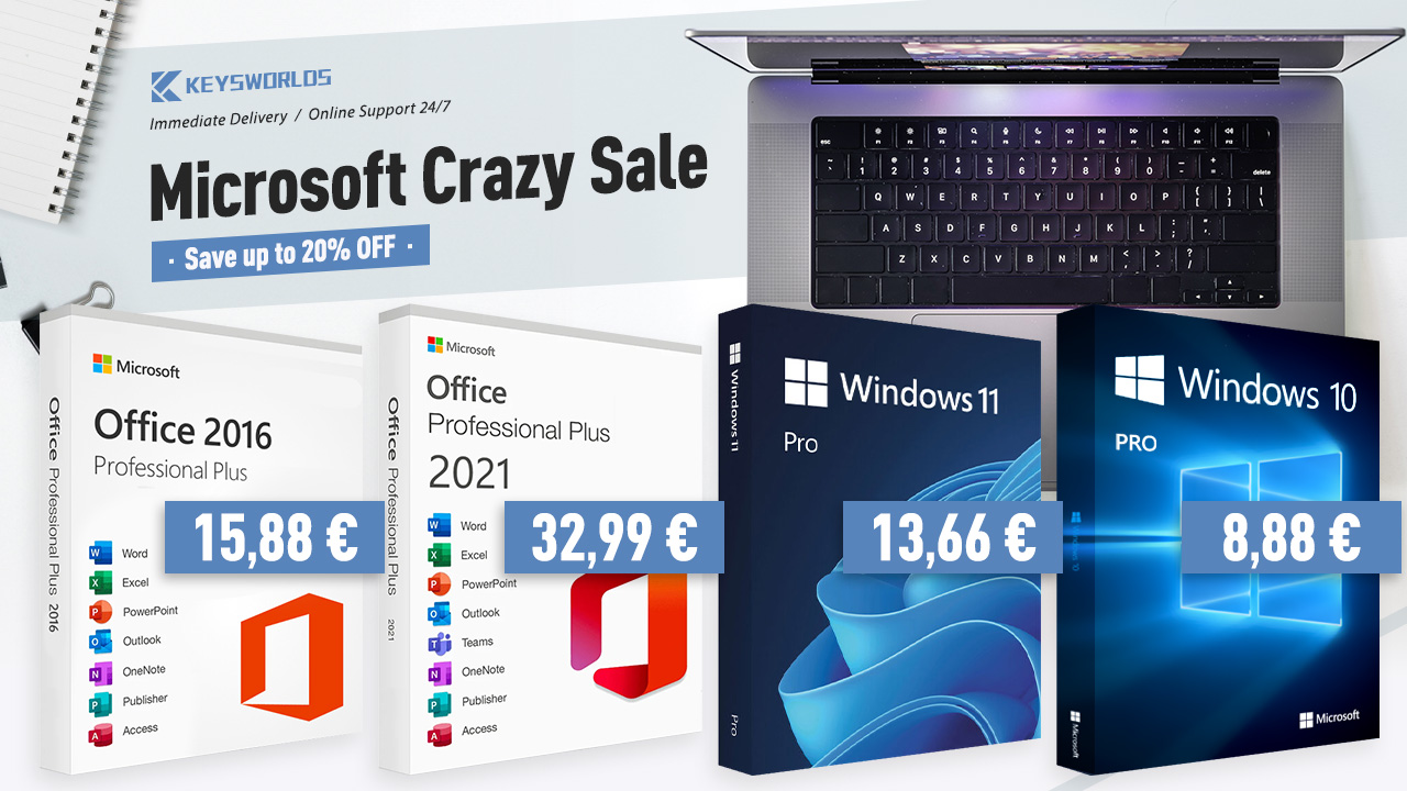 Po omezenou dobu si můžete pořídit Microsoft Office 2021 Pro za pouhých 32,99 € – neuvěřitelně výhodná cena za samostatnou licenci dostupnou pro Windows. Tato verze Office přichází s vylepšenými nástroji pro spolupráci a spoluautorství v reálném čase, podporou vysokého DPI a vylepšeným tmavým režimem pro moderní a efektivní uživatelské prostředí. Na rozdíl od měsíčních poplatků za předplatné, které vyžaduje Office365, platíte pouze jednou. Umožňuje také v případě potřeby pracovat offline, protože se nemusíte spoléhat na cloud jako modernější verze. Více možností, jako je verze pro 5 počítačů, dokonce může snížit jednotkovou cenu na 29,29 €. Pokud potřebujete Windows 11, je těžké překonat aktuální nabídku u společnosti Keysworlds. Licenci Windows 11 Pro můžete získat za pouhých 13,66 €. Pro potřeby podnikového rozsahu je zde Business Wholesale (nepotřebujete propagační kód), který vám navíc může ušetřit, například Office 2021 Pro za pouhých 27 € za klíč. Zásoby se snižují!
