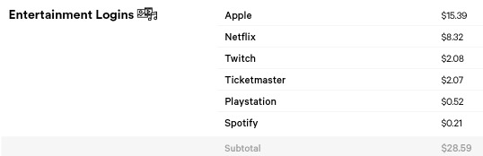 Apple ID účty patří do sekce tzv. zábavních účtů. Mezi nimi je na prvním místě s cenou jednoho účtu zhruba 15 dolarů. Za více než 300 korun si tak můžete na Dark Webu pořídit přihlašovací údaje nějakého majitele Apple ID účtu a tím mu zkompromitovat veškeré informace, které se v něm nachází. Na druhém místě v této kategorii stojí účty služby Netflix, jejichž hodnota se pohybuje kolem 9 dolarů. Naopak takový účet na službu Spotify je takřka bezcenný.