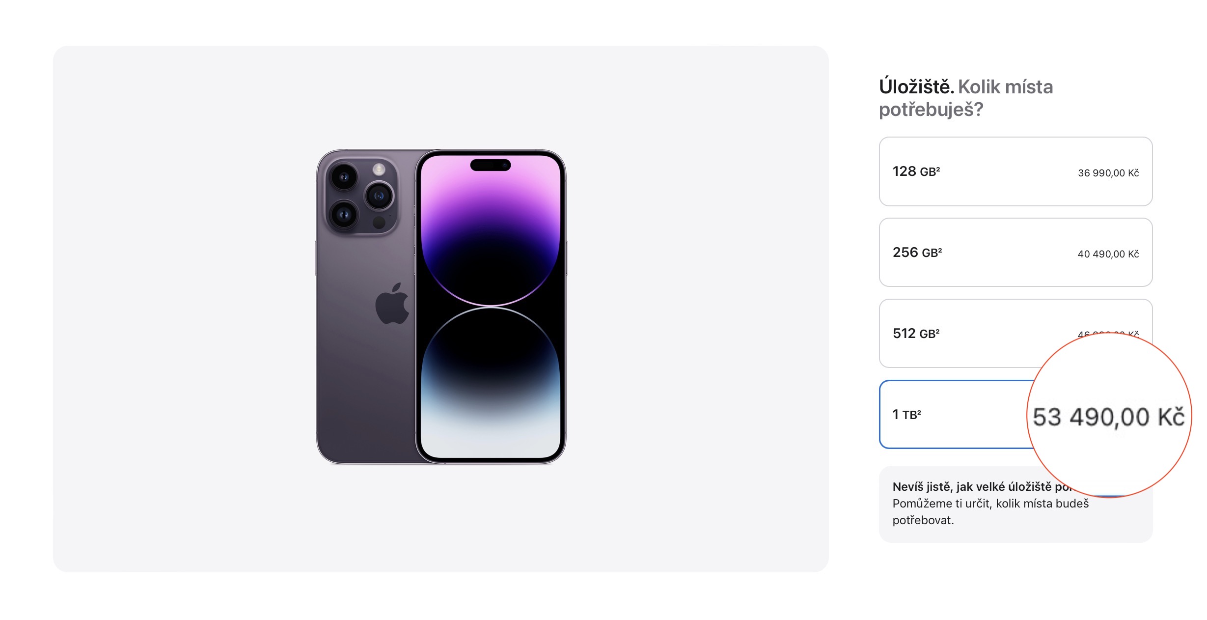 Zajisté vás tedy zajímá, na kolik vyjde nejdražší varianta nového iPhonu 14 Pro (Max) s úložištěm o kapacitě 1 TB. iPhone 14 Pro se v tomto ohledu ještě těsně vyšel do limitu 50 tisíc korun a vyjde vás na 49 990 Kč. Co se však týče většího iPhonu 14 Pro Max s 1 TB, tak u toho se Apple nebál částku 50 tisíc přestřelit, a to výrazně. Za tento model a variantu totiž zaplatíte 53 490 Kč, což je vůbec poprvé v historii, kdy cena jablečného telefonu hranici půl statisíce korun překročila. Máte v plánu si tak drahý iPhone pořídit?