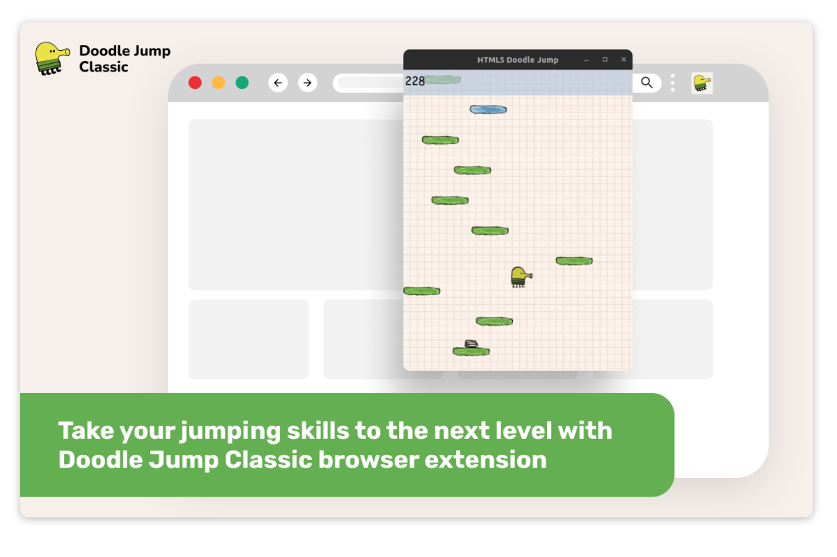 Chcete se při používání prohlížeče Google Chrome na vašem Macu také pobavit? Nainstalujte si zábavné a hravé rozšíření s názvem Doodle Jump Classic Game. Doodle Jump Classic Game přináší do Chromu zábavnou roztomilou kreslenou skákačku, díky které si můžete zkrátit dlouhou chvíli a pobavit se.