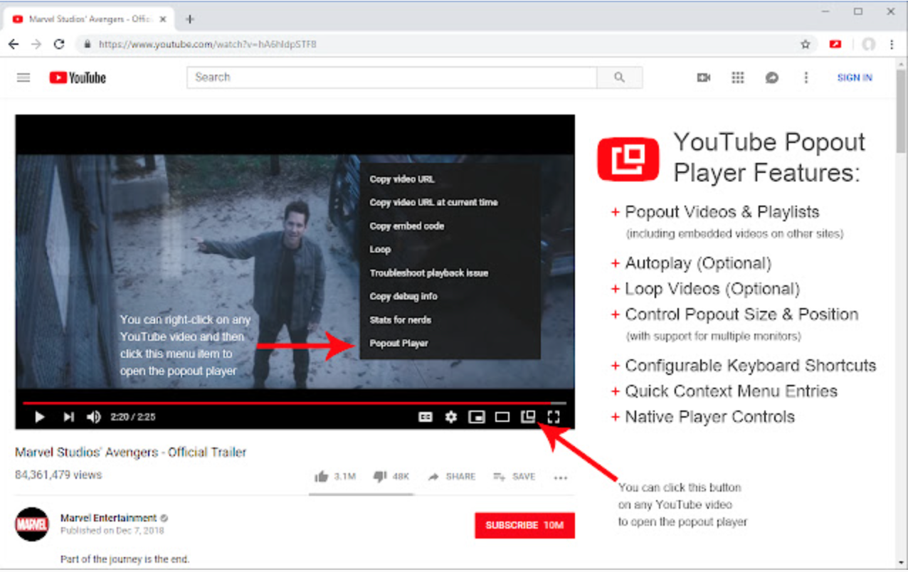 YouTube Popout Player