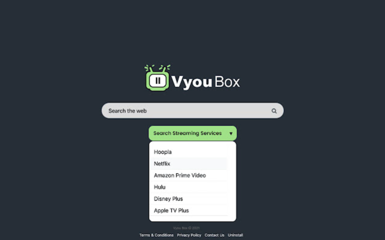 Chcete mít své oblíbené filmy a seriály na dosah ruky? S rozšířením Vyou Box to bude hračka! Jednoduše vyberte požadovanou streamovací službu z praktické rozbalovací nabídky a začněte sledovat. Nemusíte už zdlouhavě vyhledávat na jednotlivých webech. Vyou Box vám ušetří čas a zpříjemní vám chvíle strávené u počítače.