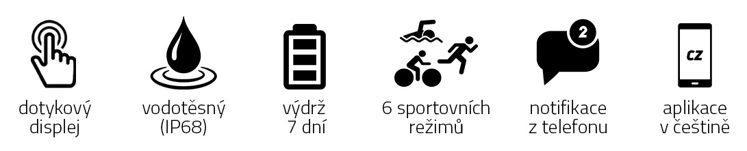 • 6 sportovních režimů (chůze, běh, turistika, plavání, cyklistika a basketbal)