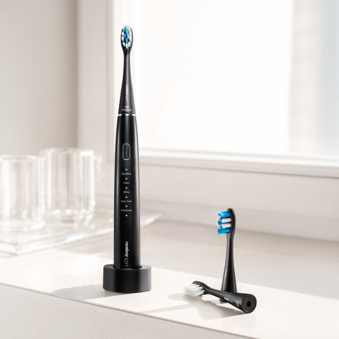 Sonický kartáček má v základním balení hned tři typy tvrdosti, takže si každý hned v úvodu může vyzkoušet, jaká tvrdost mu vyhovuje. Využívá až 43 000 kmitů za minutu a na jedno nabití vydrží až 20 dní. Pořídíte modely s mobilní aplikací i bez ní a oba typy jsou pak k dostání v tradiční bílé i decentní černé barvě.