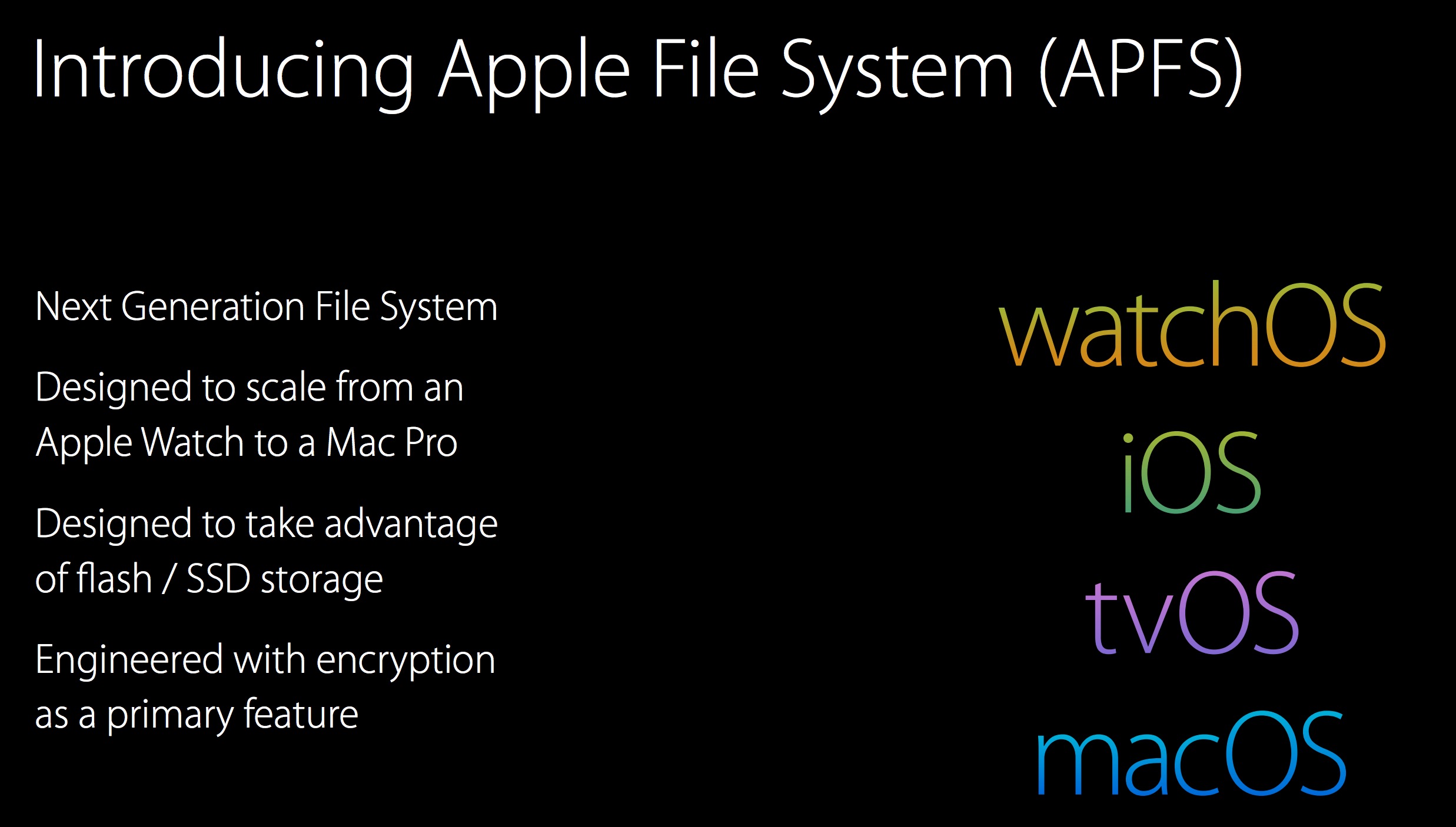 APFS, což je zkratka pro Apple File System, má tedy nahradit systém, který původně vznikl před více než třiceti lety, a má tak učinit na všech platformách Applu v průběhu roku 2017. Jeho vývoj začal teprve před necelými třemi lety, ale Apple se snažil HFS+ nahradit přinejmenším od roku 2006.