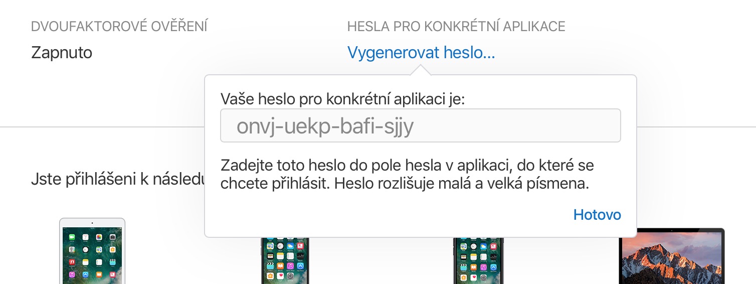 Jakmile si dvoufaktorové ověření zapnete, můžete si na webu appleid.apple.com hesla pro každou aplikaci vygenerovat. Jak na to, najdete v našem návodu.