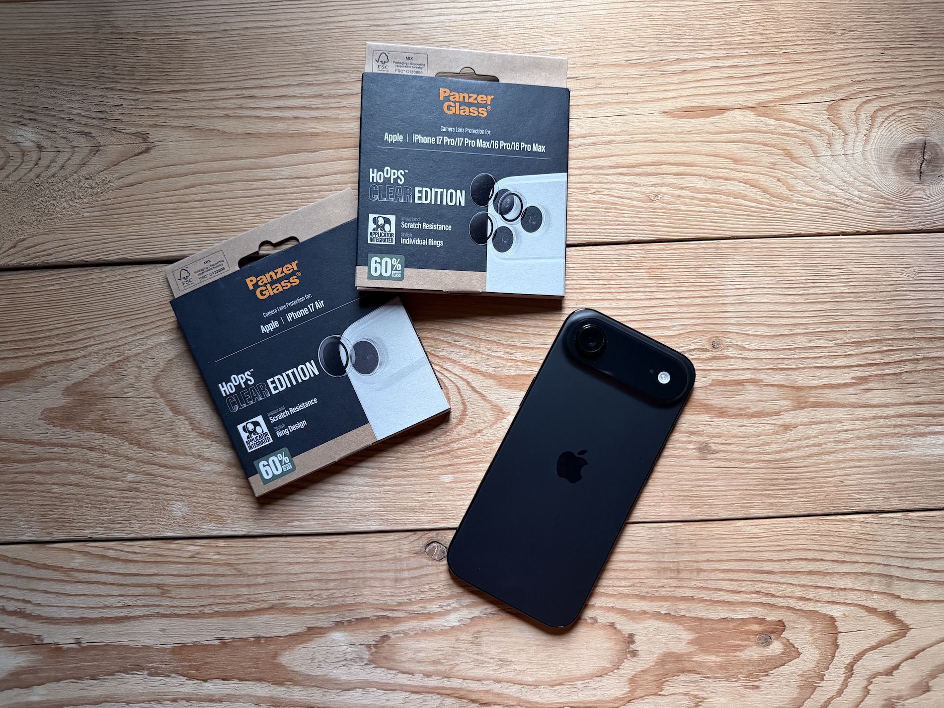 Společnost PanzerGlass nabízí širokou škálu příslušenství pro iPhony a telefony jiných značek, od tvrzených skel přes kryty s podporou MagSafe až po specializované doplňky. Jedním z nich je i HOOPS Camera Protector, který je navržený právě pro ochranu fotoaparátů – u iPhonu Air jednoho, u iPhonu 17 dvou a u iPhonů 17 Pro a 17 Pro Max všech tří. My toto sklo testovali s prvním zmíněným novým iPhonem, tedy iPhonem Air.
