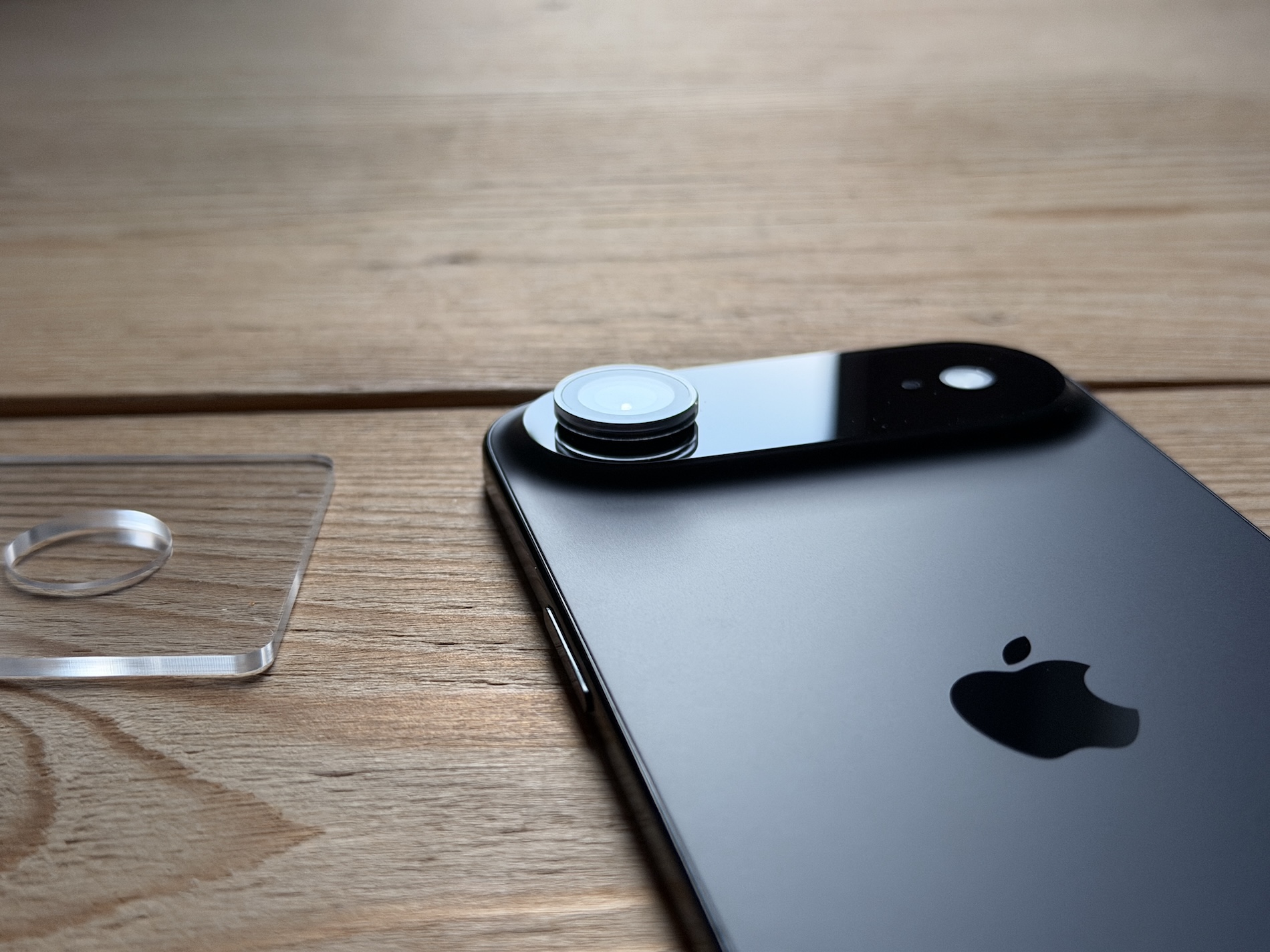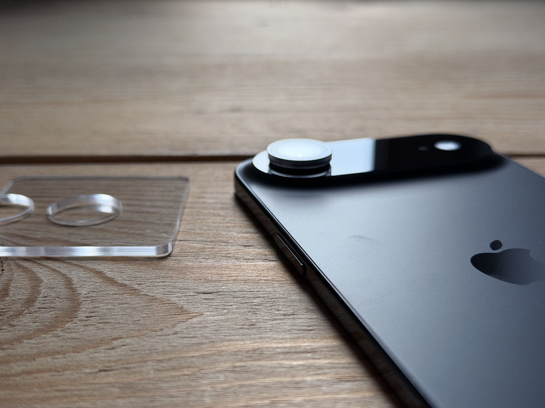 Sklo nijak neovlivňuje kvalitu fotografií – je dokonale čiré, nezkresluje světlo ani nepřidává odlesky. Díky jeho úpravě je navíc těch odlesků o něco méně. Má i speciální povrchovou úpravu proti otiskům prstů a mastnotě. I s nasazeným sklem zůstává telefon kompatibilní s kryty od Applu i PanzerGlassu, a nepůsobí u nich žádné problémy při položení na rovnou plochu. Bez krytu se kolébání samozřejmě zhorší, protože telefon přece jen o něco málo narostl do své tloušťky. Ještě se hodí dodat, že kroužky jsou chyceny extrémně silným lepidlem, které hermeticky uzavře čočku a nedochází tak k nějakému nepříjemnému mlžení.