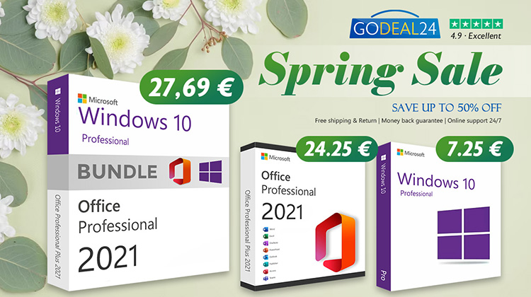 - Windows 10 Professional + Office 2021 Professional Plus- Spring Bundle – 27.69€