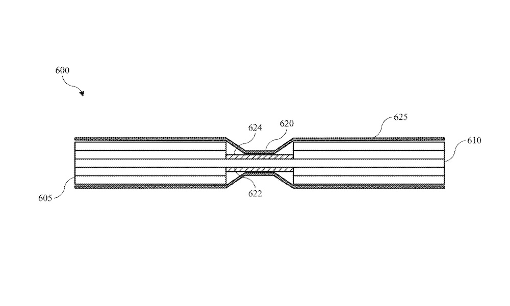 Na výše přiloženém snímku, který byl zveřejněn spolu s patentem, lze vidět, jak by baterie teoreticky mohla vypadat. Uprostřed je pak patrné zmiňované zmenšení. To s vysokou pravděpodobností poslouží pro místo ohybu. Apple v patentu nadále zmiňuje, jak by z této technologie mohl obecně benefitovat, a jak by ji šlo využít i v případě dalších připojených zařízení. Obecně by něco podobného umožnilo dodat zařízení mechanickou flexibilitu, případně dvě baterie (jednu na každé straně).