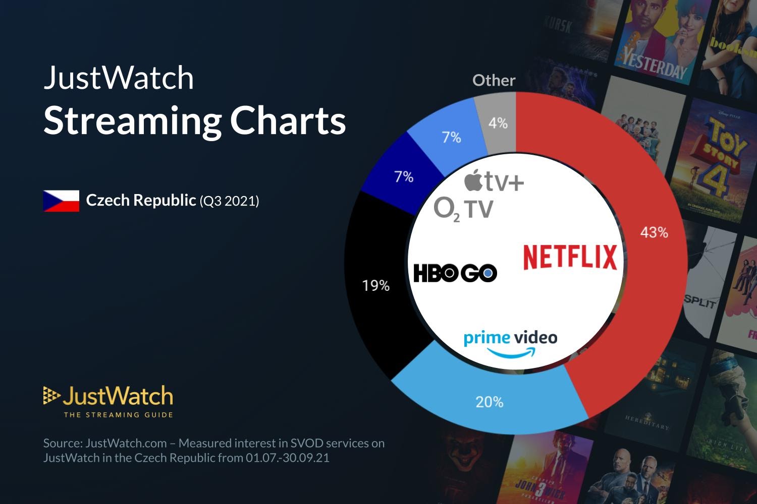 V České republice si ve třetím kvartálu 2021 velmi dobře vedla služba Prime Video – ta se dočkala celkově 4% nárůstu oproti druhému kvartálu. Díky tomu se stalo Prime Video druhou nejoblíbenější streamovací službu v tuzemsku. Náskok má však pouhé jedno procento, a to před HBO GO. První v žebříku je samozřejmě Netflix, který si drží 43% tržní podíl. U služeb  TV+ a O2 TV došlo k 1% nárůstu, respektive 2% nárůstu tržního podílu oproti předchozímu čtvrtletí. Obě tyto služby tedy v současné chvílí mají v tuzemsku 7% podíl na trhu.