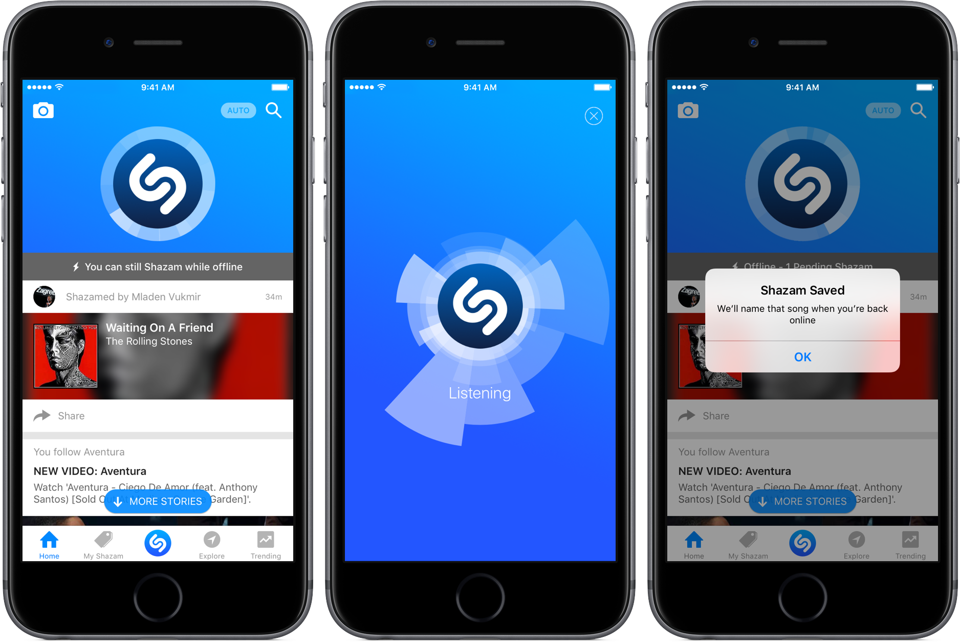 Aplikací pro rozpoznávání hudby je nespočet, tou nejosvědčenější je pro nás však aplikace Shazam, kterou dokonce v nedávné době zakoupil samotný Apple. Velkou výhodou této aplikace je především fakt, že je schopna fungovat i bez aktivního datového připojení (Wi-Fi/data operátora). Své hudební objevy můžete následně sdílet na sociálních sítích, případně si danou skladbu poslechnout v aplikacích Spotify/Apple Music. Hudbu si také můžete zakoupit prostřednictvím odkazu na iTunes. Shazam také rovněž funguje jako malá sociální síť, na které můžete sledovat to, co hledají vaši přátelé z Facebooku.