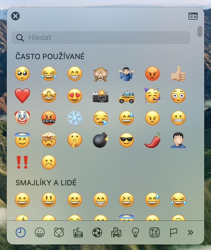 Pokud chcete při psaní na iPhonu či iPadu přidat do vašeho textu emoji, stačí jednoduše přepnout na příslušnou klávesnici. Jak ale najít ten správný symbol na Macu? Naštěstí to není ani trochu těžké. Podobně jako v případě rychlého skrytí Docku si i zde pomůžete klávesovou zkratkou – tentokrát se jedná o stisk kláves Control + Cmd + mezerník. Zobrazí se vám nabídka, ze které následně stačí už jen kliknutím vybrat obrázek, který chcete použít.