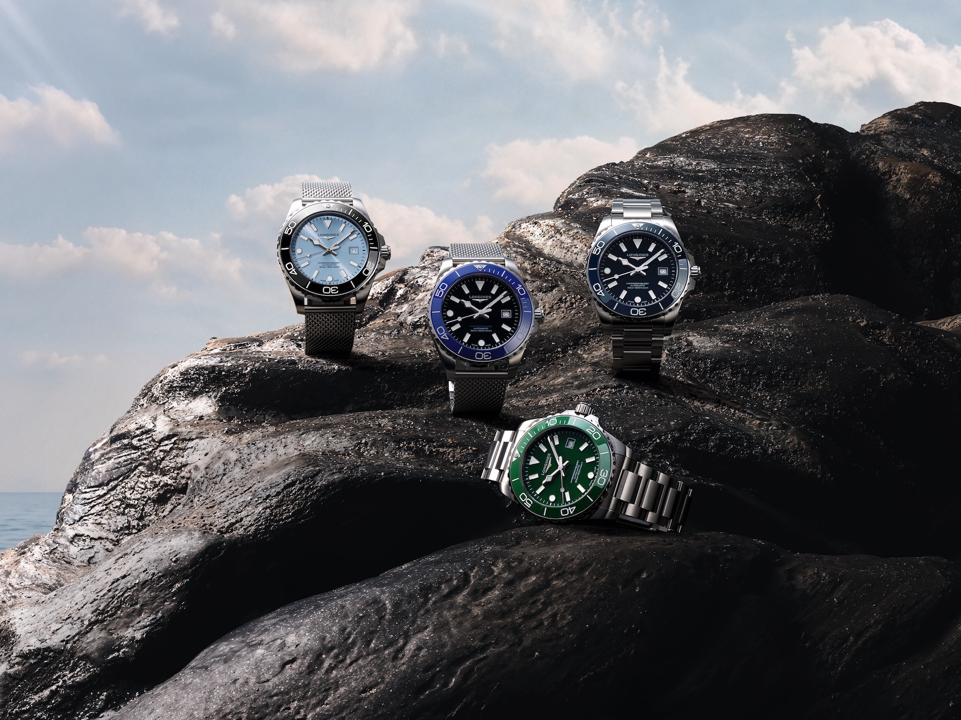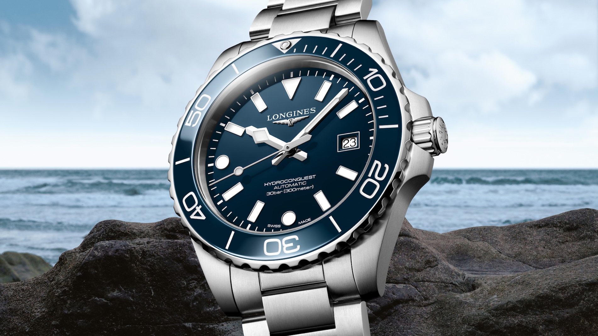 Kolekce HydroConquest byla poprvé uvedena v roce 2007 a letos se dočkala rozsáhlého redesignu. Ten spojuje moderní estetiku s osvědčenou odolností. Nové modely jsou dostupné ve dvou velikostech pouzdra z nerezové oceli: 39 mm a 42 mm. Číselníky v lakovaném modrém, černém nebo zeleném provedení doplňuje unikátní varianta „frosted-blue“ se slunečním brusem, která vytváří podmanivou hru světla. Takovou vám nenabídne žádný ciferník Apple Watch.