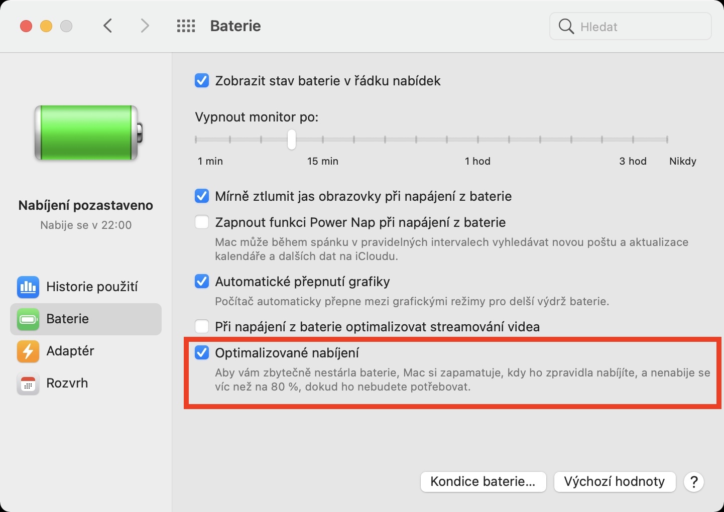 Ostatně z těchto důvodů je pro baterie celkově optimalizován i software. To platí nejen v případě laptopů od Applu, ale prakticky v jakékoliv moderní elektronice – od telefony, přes tablety, až po chytré hodinky, laptopy a další. MacBooky jsou právě proto vybaveny speciální funkcí s názvem Optimalizované nabíjení. Ta zajišťuje, že se zařízení jako takové dobije pouze do 80 %, zatímco zbytek se dobije později. Zařízení se v takovém případě naučí nabíjet podle toho, jak konkrétní uživatel zařízení používá. Cílem je, abyste při připojení ke zdroji měli neustále 80 %, avšak v případě, kdy potřebujete vzít laptop a odejít, tak byste měli mít zmiňovaných 100 %. U toho ale zůstává zásadní otázka. Proč se MacBook nemusí nabíjet do 100 % a drží se raději na 80 %?