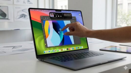Apple má rovněž nyní upravovat macOS tak, aby byl plně kompatibilní s dotykovým ovládáním. Systém má například rozpoznat, zda uživatel používá k ovládání trackpad, myš nebo prst. Při dotyku displeje se například nabídky v horní liště zvětší a nabídnou ovládací prvky optimalizované pro tento způsob ovládání. Přibýt mají i gesta známá z iPadu (přiblížení sevřením prstů nebo rychlé scrollování).