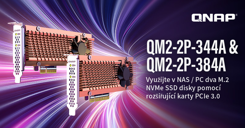 Tisková zpráva: Společnost QNAP® Systems, Inc., přední inovátor v oblasti výpočetních, síťových a úložných řešení, představila nové rozšiřující karty QM2 PCIe Gen 3: QM2-2P-344AQM2-2P-384A. Karty QM2 lze nainstalovat do kompatibilních QNAP NAS nebo počítačů/pracovních stanic se systémem Windows®/Linux®, které takto získají sloty M.2 NVMe SSD (M.2 SSD moduly se prodávají samostatně) přinášející zvýšení výkonu systému a úložné kapacity.