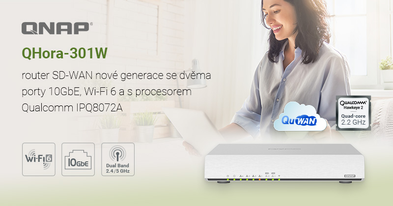 Tisková zpráva: Společnost QNAP® Systems, Inc., přední inovátor v oblasti výpočetních, síťových a úložných řešení, dnes představila QHora-301W, router SD-WAN (Software-Defined Wide Area Network) s Wi-Fi 6 a dvěma porty 10GbE. Tento router nové generace poskytuje nejen vzdálenou síť VPN pro větší počet pracovišť a kompletní konektivitu, ale také topologii QuWAN Cloud Orchestrator a vylepšené funkce zabezpečení, poskytující flexibilní a spolehlivou vysoce účinnou síťovou strukturu pro práci na dálku a podniky s více pracovišti.