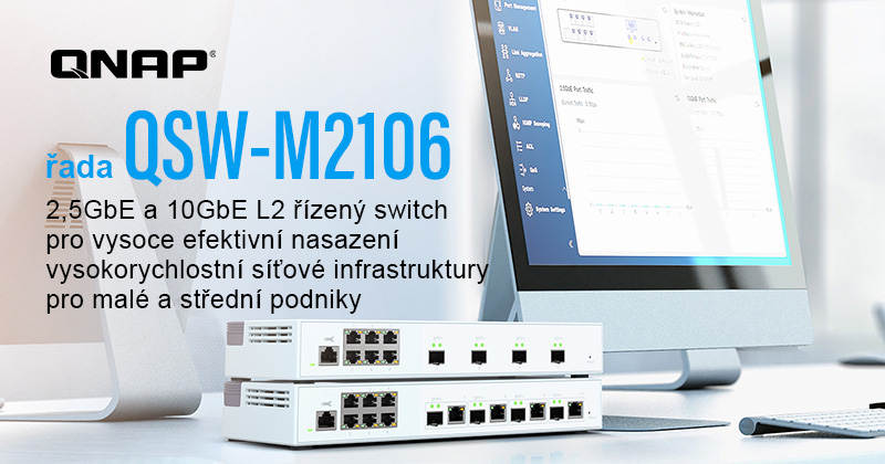 Tisková zpráva: Společnost QNAP® Systems, Inc., přední inovátor v oblasti výpočetních a úložných řešení, představila řadu 10portových desktopových webově řízených switchů 2. vrstvy – QSW-M2106, zahrnující modely QSW-M2106-4C a QSW-M2106-4S. Řada QSW-M2106, nabízející podporu 2,5GbE, 10GbE a praktických funkcí správy na 2. vrstvě, uspokojuje požadavky serverů a LAN infrastruktury na vysokou šířku pásma a je ideální volbou pro malé a střední podniky.