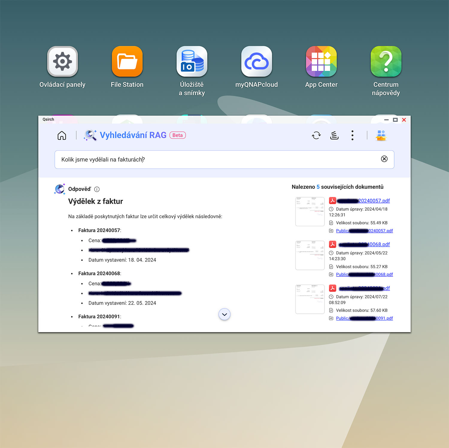 Představte si, že ve vaší firmě denně přistupujete k desítkám dokumentů, faktur, tabulek a e-mailů. Každý zaměstnanec potřebuje občas najít konkrétní informaci: kdy byla schůzka k projektu X, kdo schválil rozpočet nebo co přesně bylo v příloze e-mailu od klienta. V minulosti by to znamenalo ruční procházení složek a hledání názvů souborů nebo klíčových slov. Teď ale stačí napsat otázku, třeba: „Kdo schválil rozpočet pro projekt X a kdy?“ nebo „Kolik jsme vydělali na fakturách?“, a QNAP RAG AI Search vám během pár sekund odpoví, včetně odkazu na původní dokument. To znamená výraznou úsporu času a jistotu, že budete mít vždy relevantní odpověď.