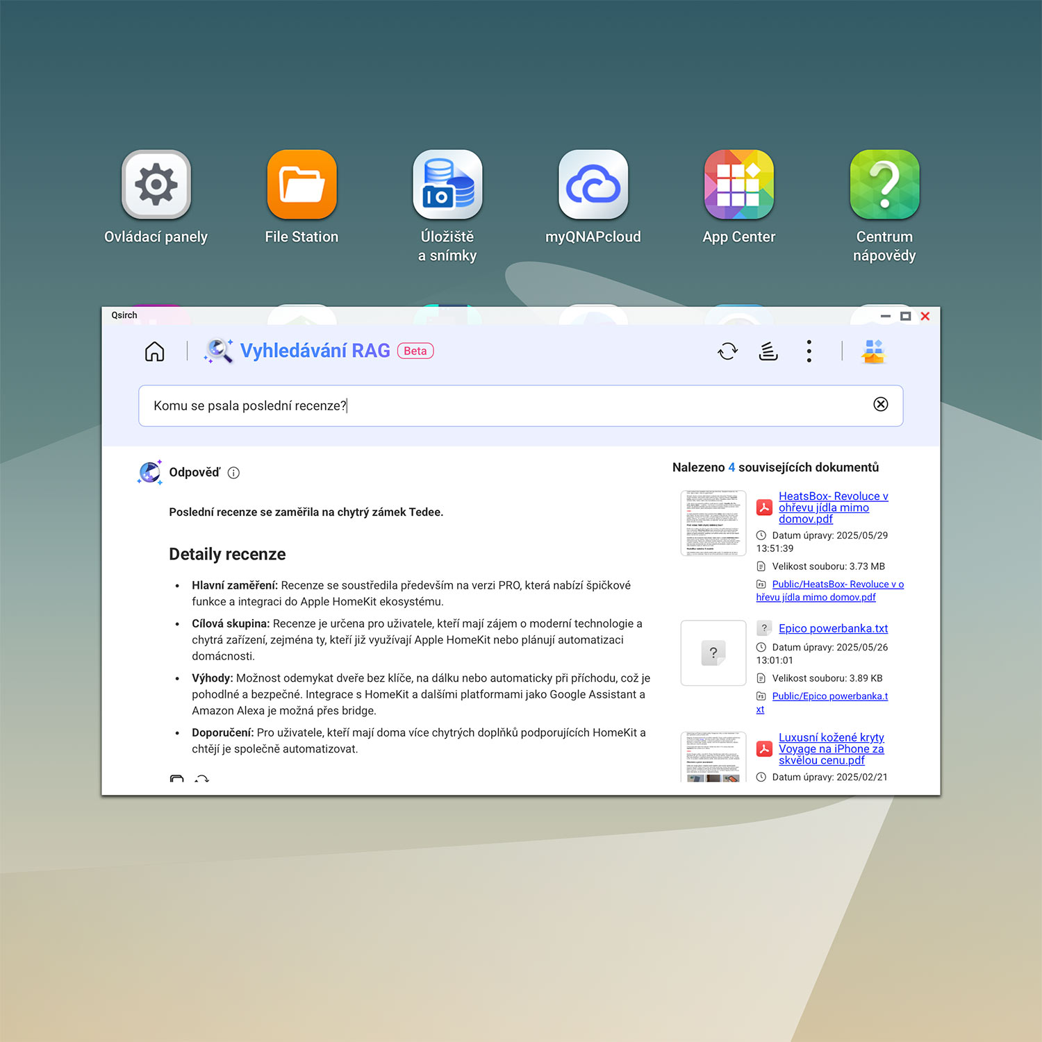 Pokud jste někdy přemýšleli, zda takové řešení zvládne i méně technicky zdatný uživatel, odpověď zní ano. RAG Search totiž funguje přímo v rozhraní Qsirch, které je známé svou jednoduchostí a intuitivním ovládáním. Vše probíhá v prostředí, které už uživatelé QNAP znají – žádné nové aplikace, žádné zbytečné učení. A co je nejlepší, dotaz zadáváte stejně, jako byste psali e-mail – prostě zadáte otázku a systém ji vyhodnotí.