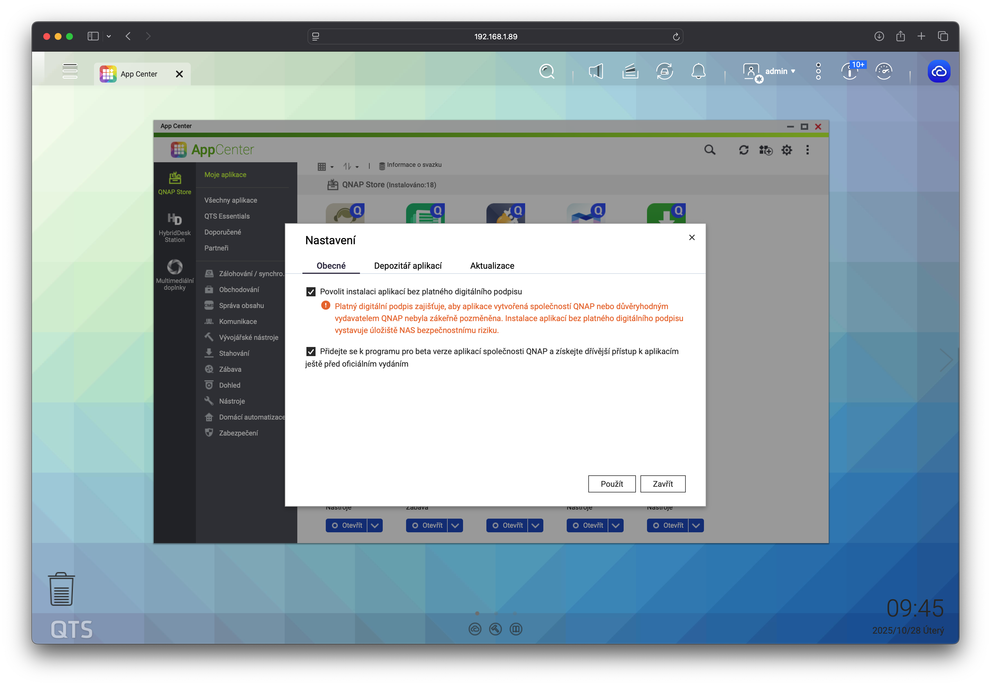 • „Jaké aplikace jsou na NAS nainstalované?“