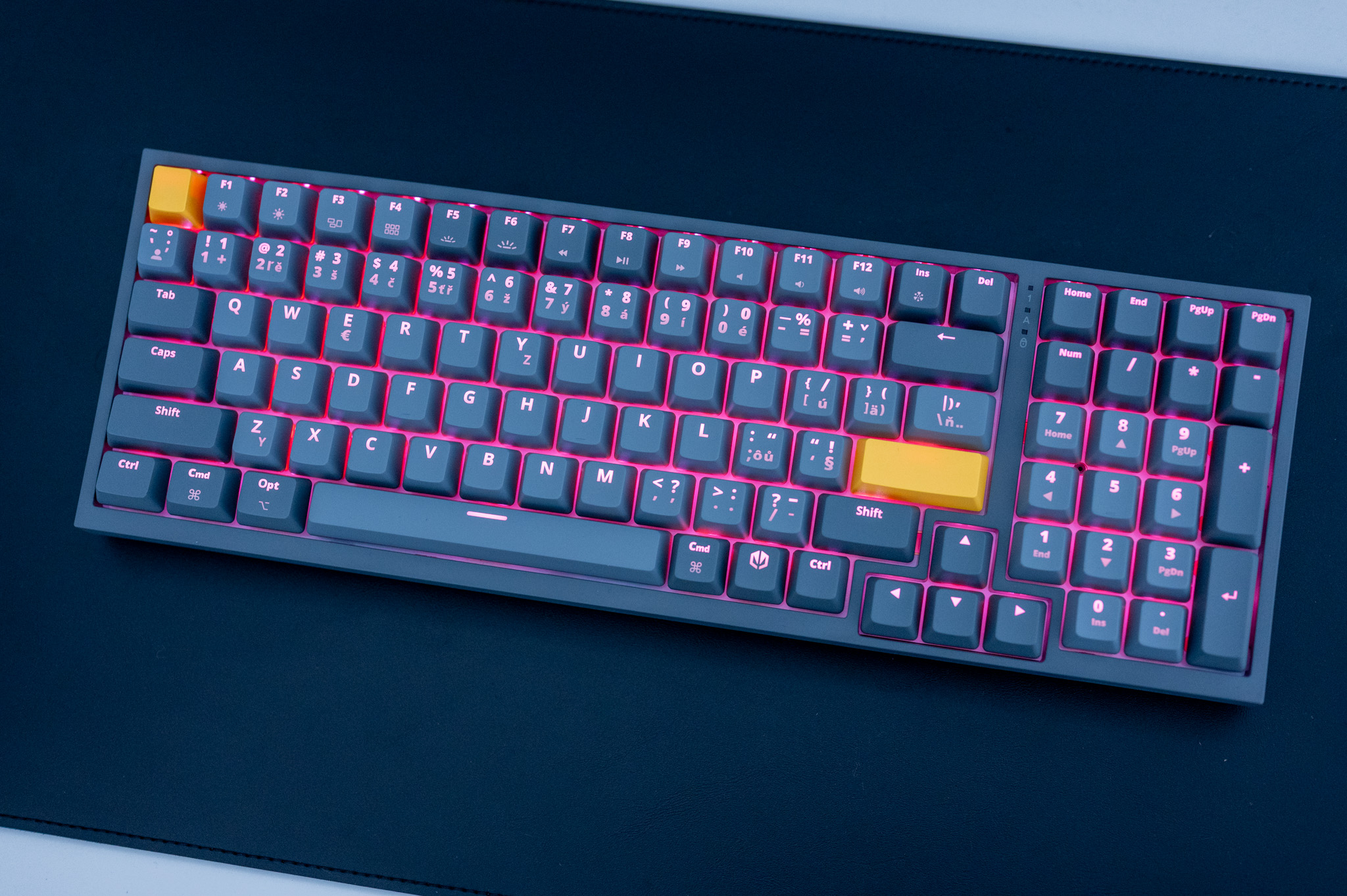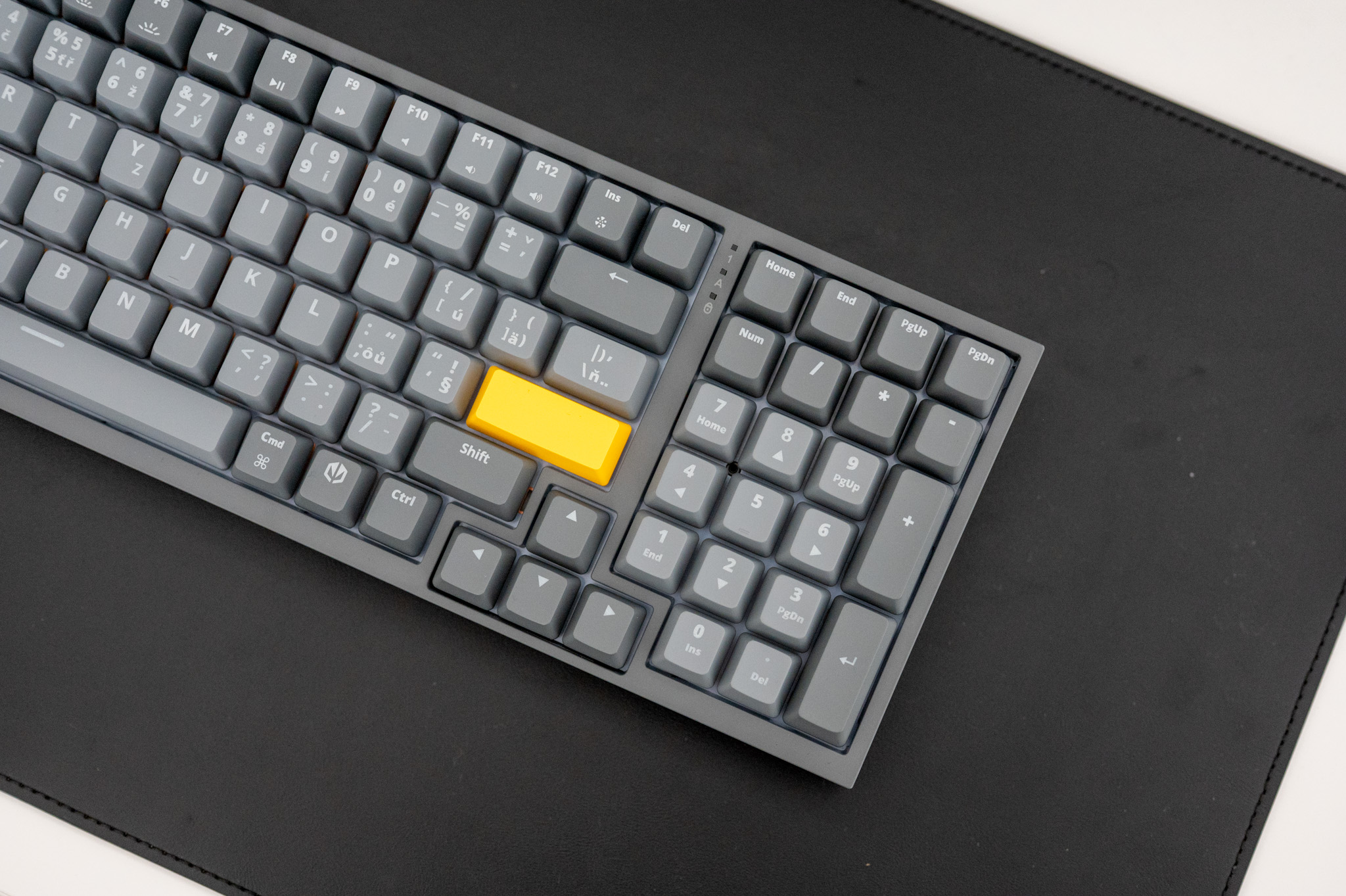 Už když jsem Celeris 1800 poprvé vytáhl z krabice, bylo mi jasné, že tohle není žádná levná plastová hračka. Celé tělo působí bytelně, nikde nic nevrže, neprohýbá se a díky decentnímu barevnému provedení v šedých tónech s několika žlutými akcenty se klávesnice neztratí ani vedle MacBooku. Oproti mnoha herním mechanikám působí Celeris 1800 až nezvykle dospěle.